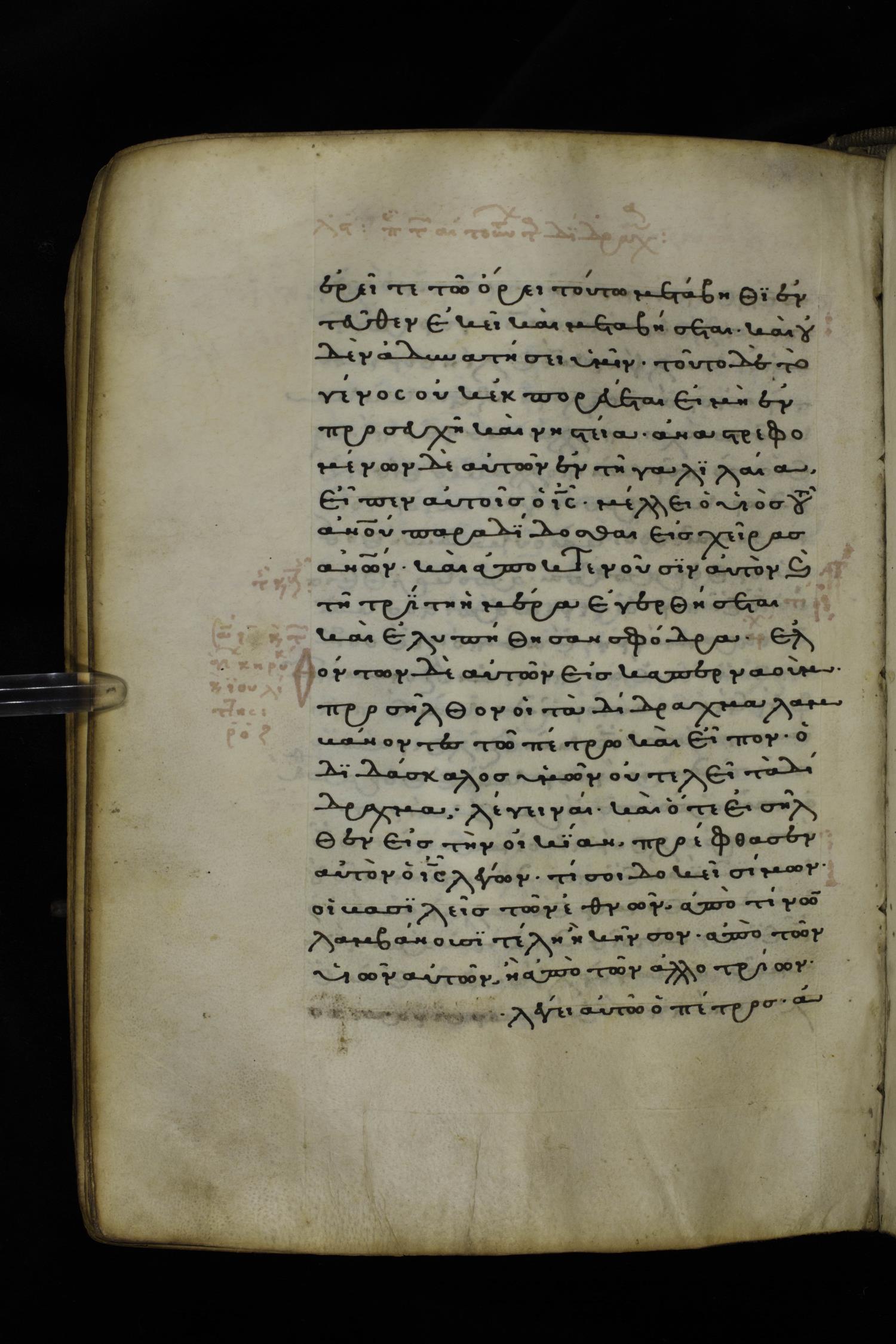 Thirteenth or fourteenth century minuscule of the Gospels on parchment; 312 leaves, 1 column, 19-22 lines per column. Images were taken at the National Library of Greece in Athens.
