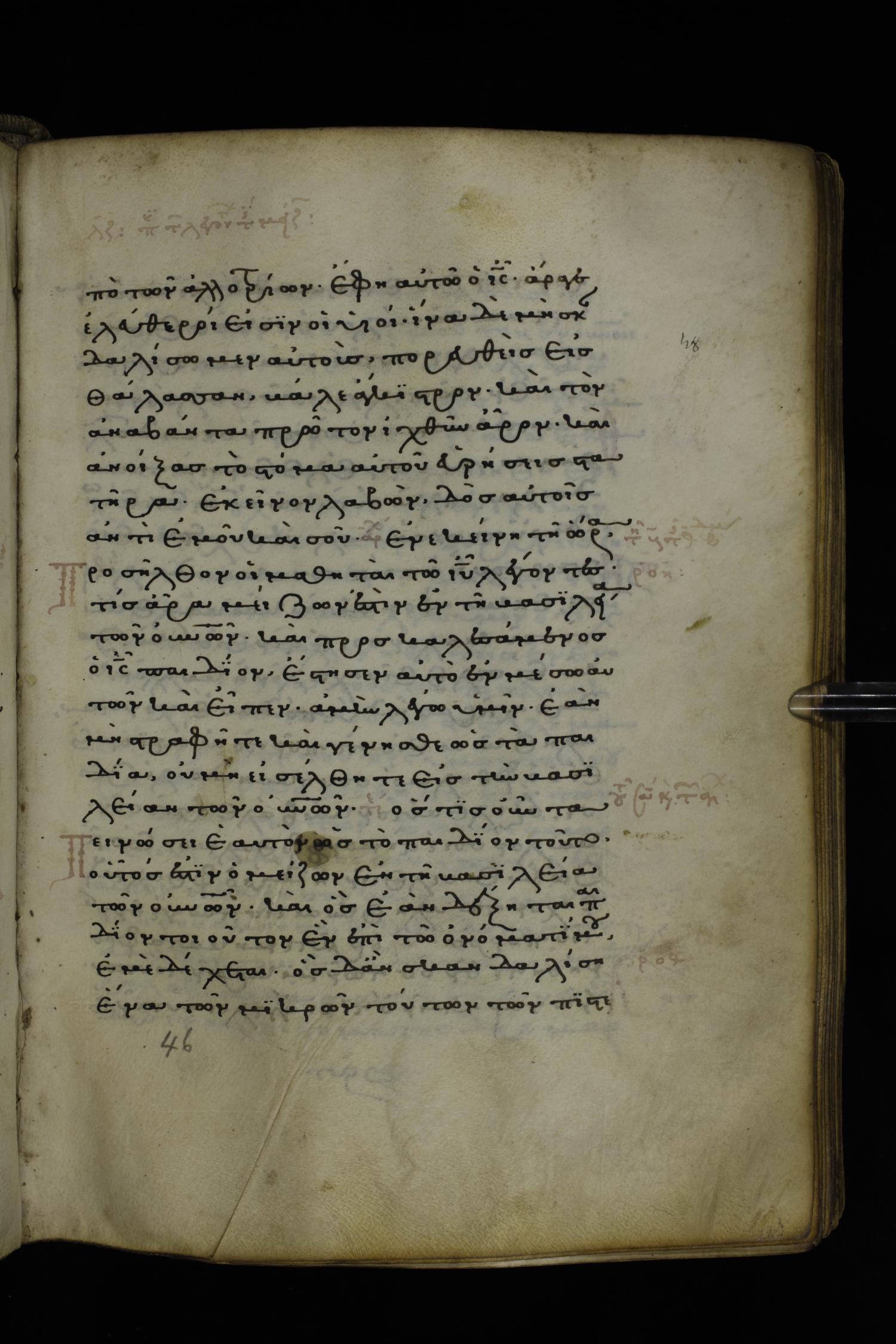 Thirteenth or fourteenth century minuscule of the Gospels on parchment; 312 leaves, 1 column, 19-22 lines per column. Images were taken at the National Library of Greece in Athens.