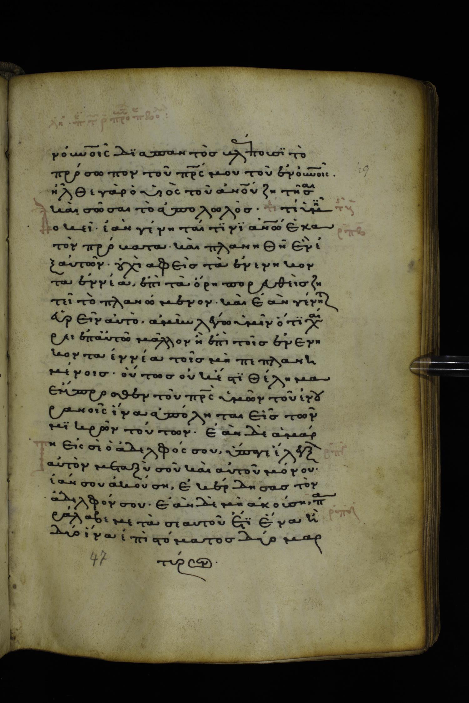 Thirteenth or fourteenth century minuscule of the Gospels on parchment; 312 leaves, 1 column, 19-22 lines per column. Images were taken at the National Library of Greece in Athens.