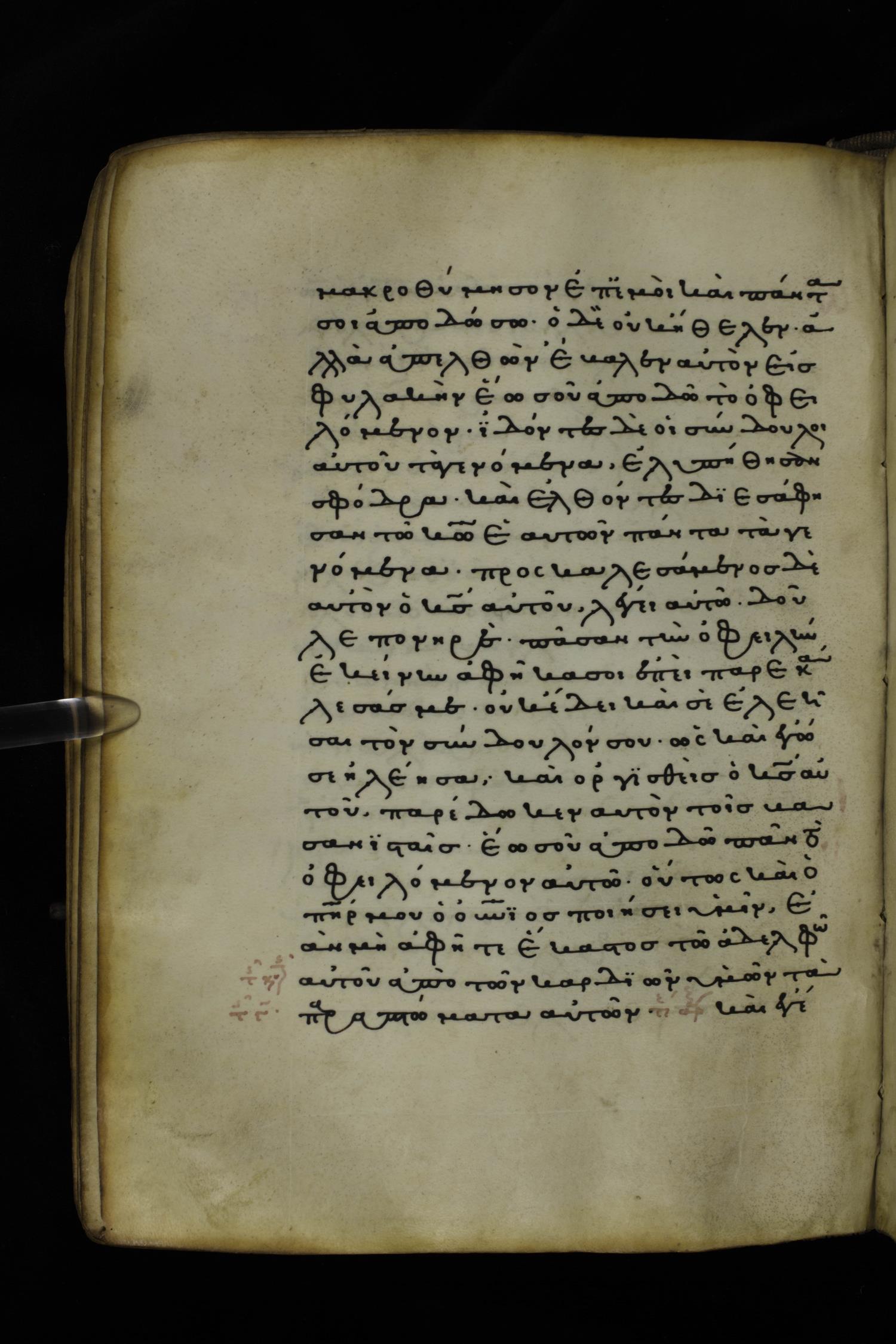 Thirteenth or fourteenth century minuscule of the Gospels on parchment; 312 leaves, 1 column, 19-22 lines per column. Images were taken at the National Library of Greece in Athens.