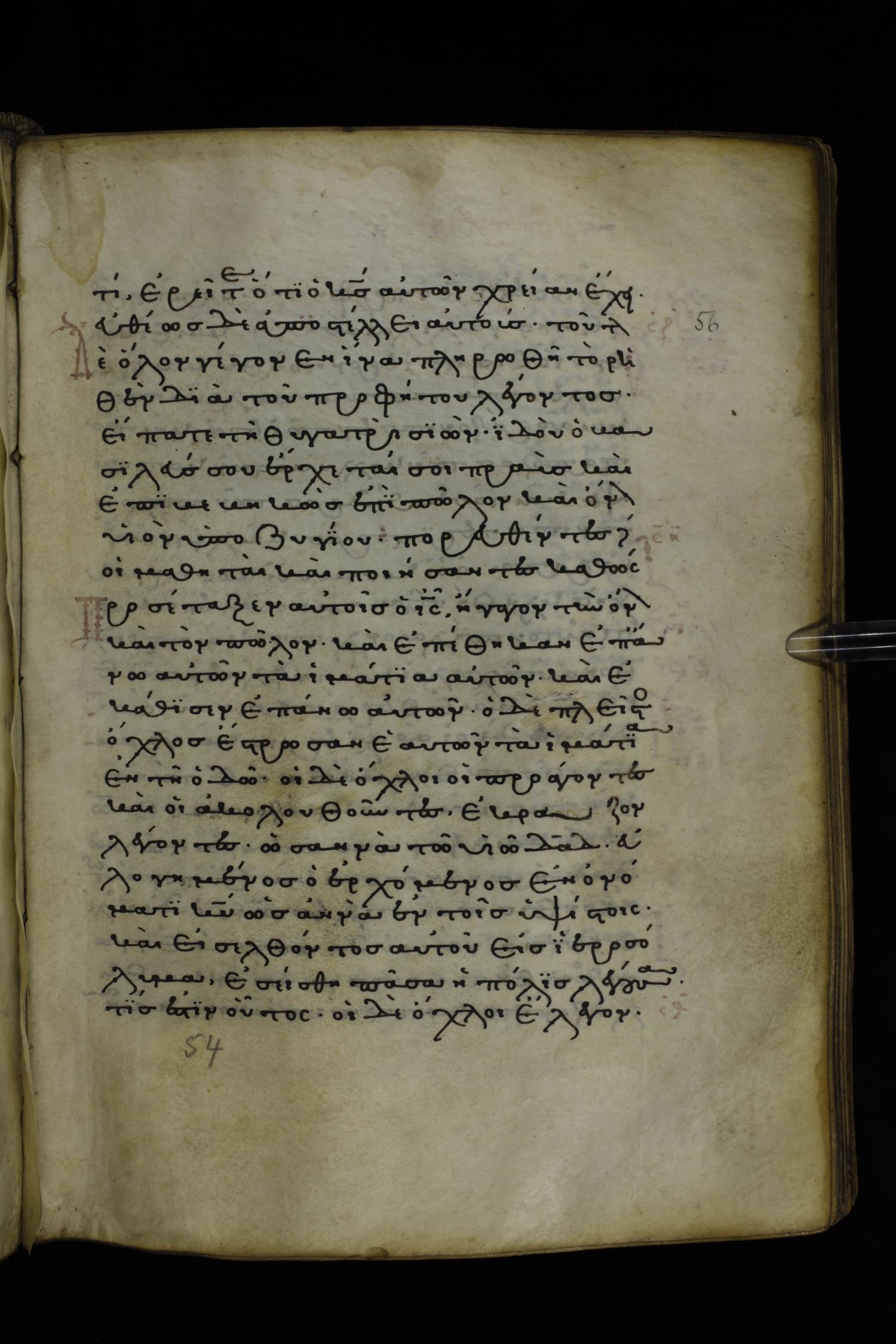 Thirteenth or fourteenth century minuscule of the Gospels on parchment; 312 leaves, 1 column, 19-22 lines per column. Images were taken at the National Library of Greece in Athens.