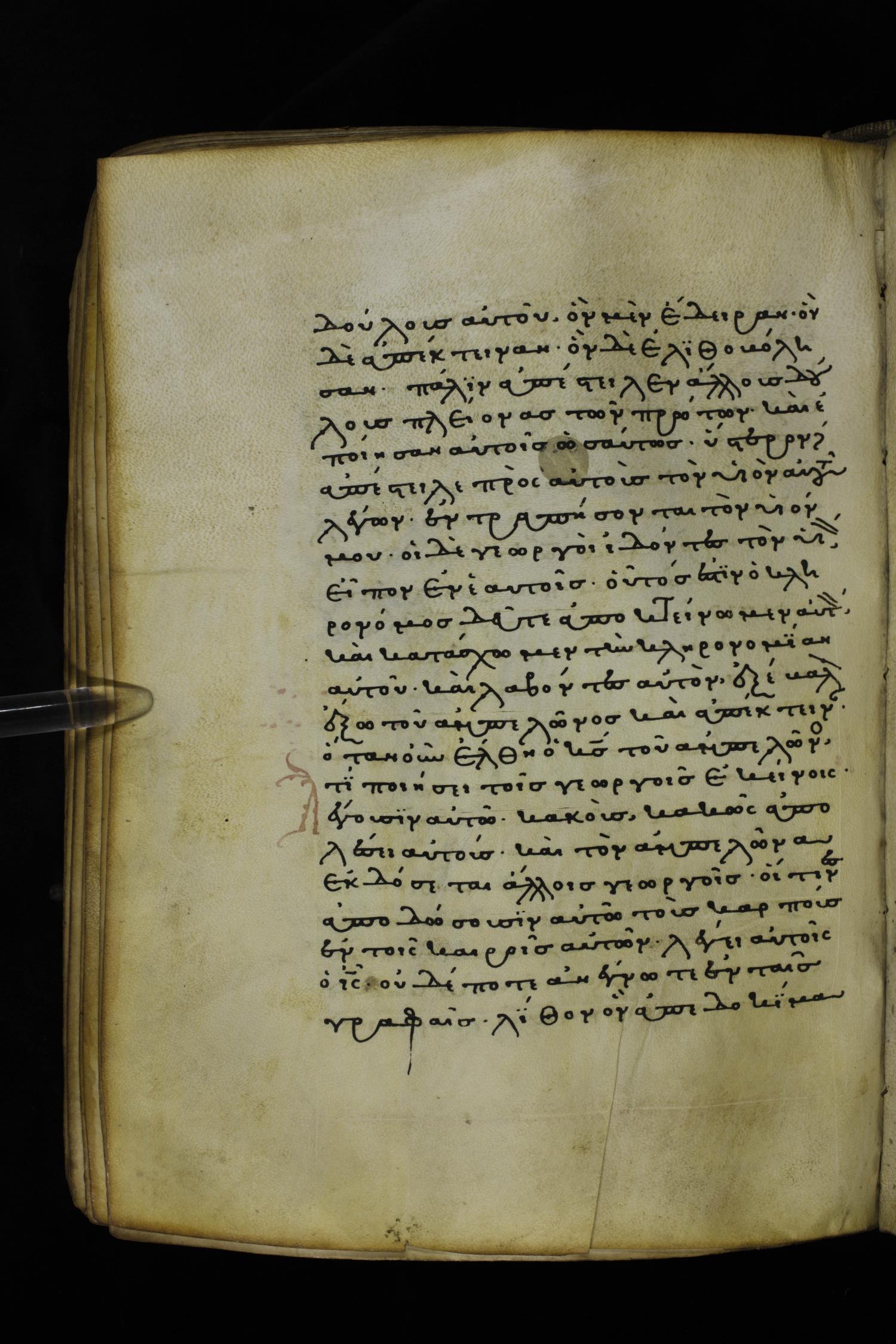 Thirteenth or fourteenth century minuscule of the Gospels on parchment; 312 leaves, 1 column, 19-22 lines per column. Images were taken at the National Library of Greece in Athens.