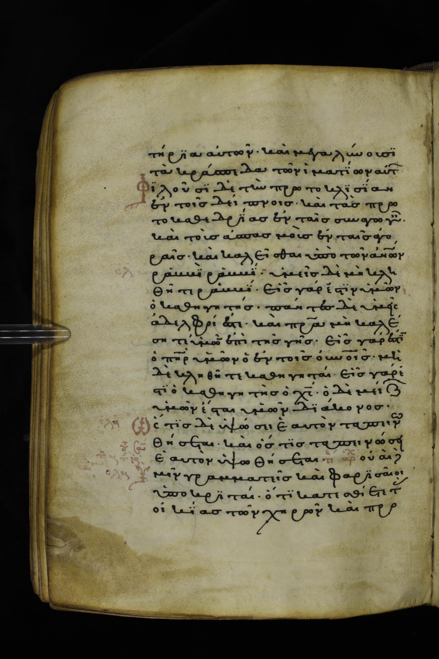 Thirteenth or fourteenth century minuscule of the Gospels on parchment; 312 leaves, 1 column, 19-22 lines per column. Images were taken at the National Library of Greece in Athens.
