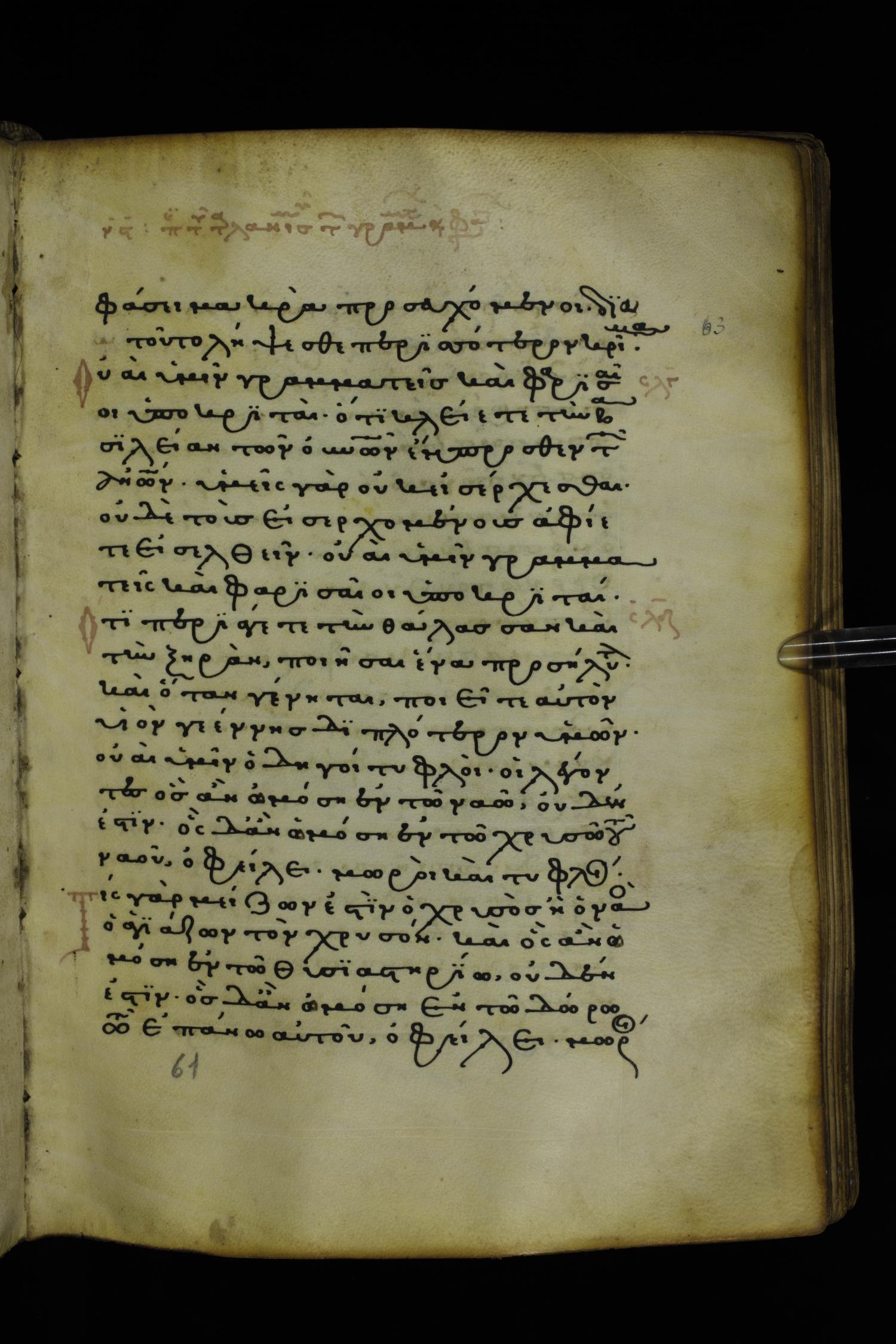 Thirteenth or fourteenth century minuscule of the Gospels on parchment; 312 leaves, 1 column, 19-22 lines per column. Images were taken at the National Library of Greece in Athens.