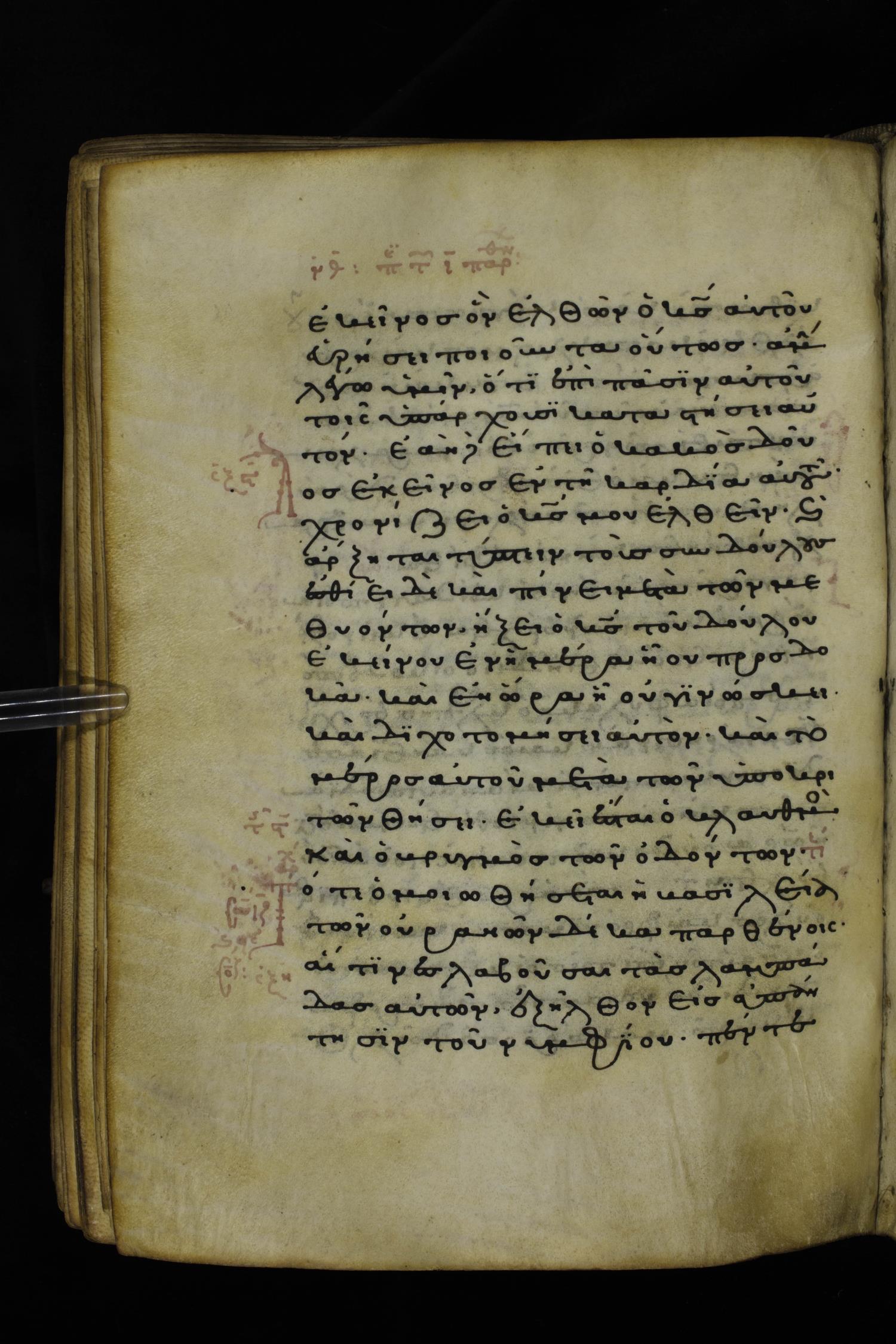 Thirteenth or fourteenth century minuscule of the Gospels on parchment; 312 leaves, 1 column, 19-22 lines per column. Images were taken at the National Library of Greece in Athens.