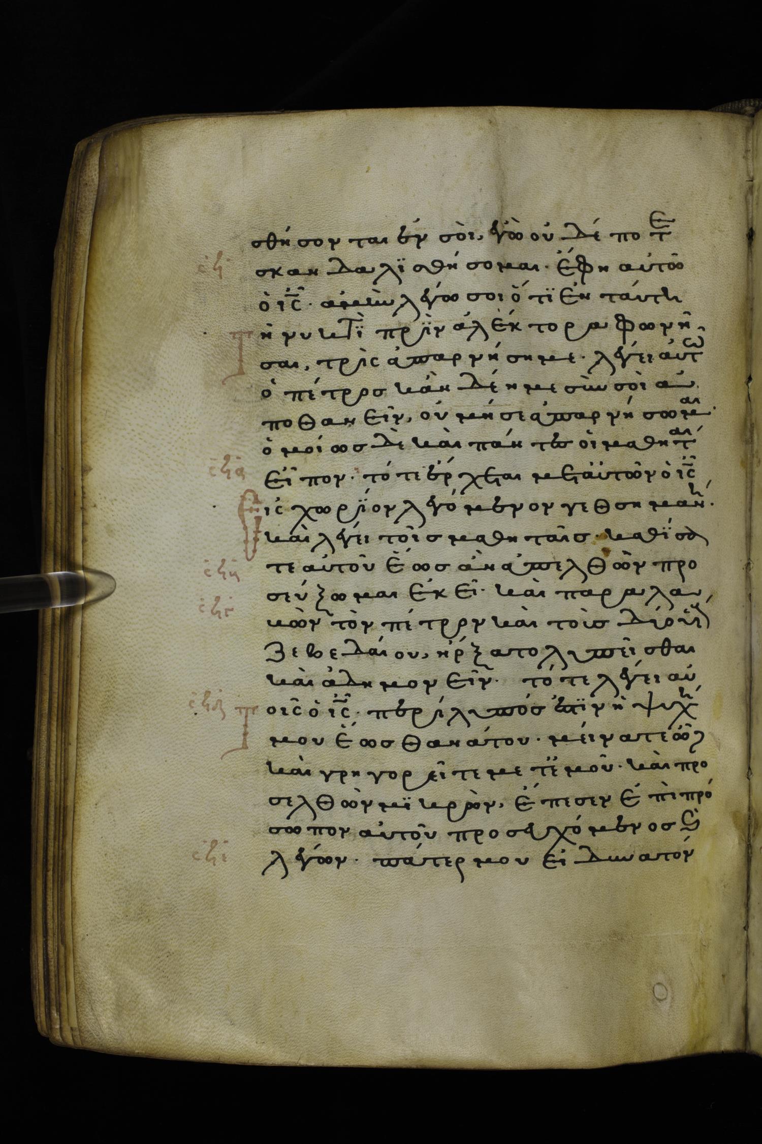 Thirteenth or fourteenth century minuscule of the Gospels on parchment; 312 leaves, 1 column, 19-22 lines per column. Images were taken at the National Library of Greece in Athens.