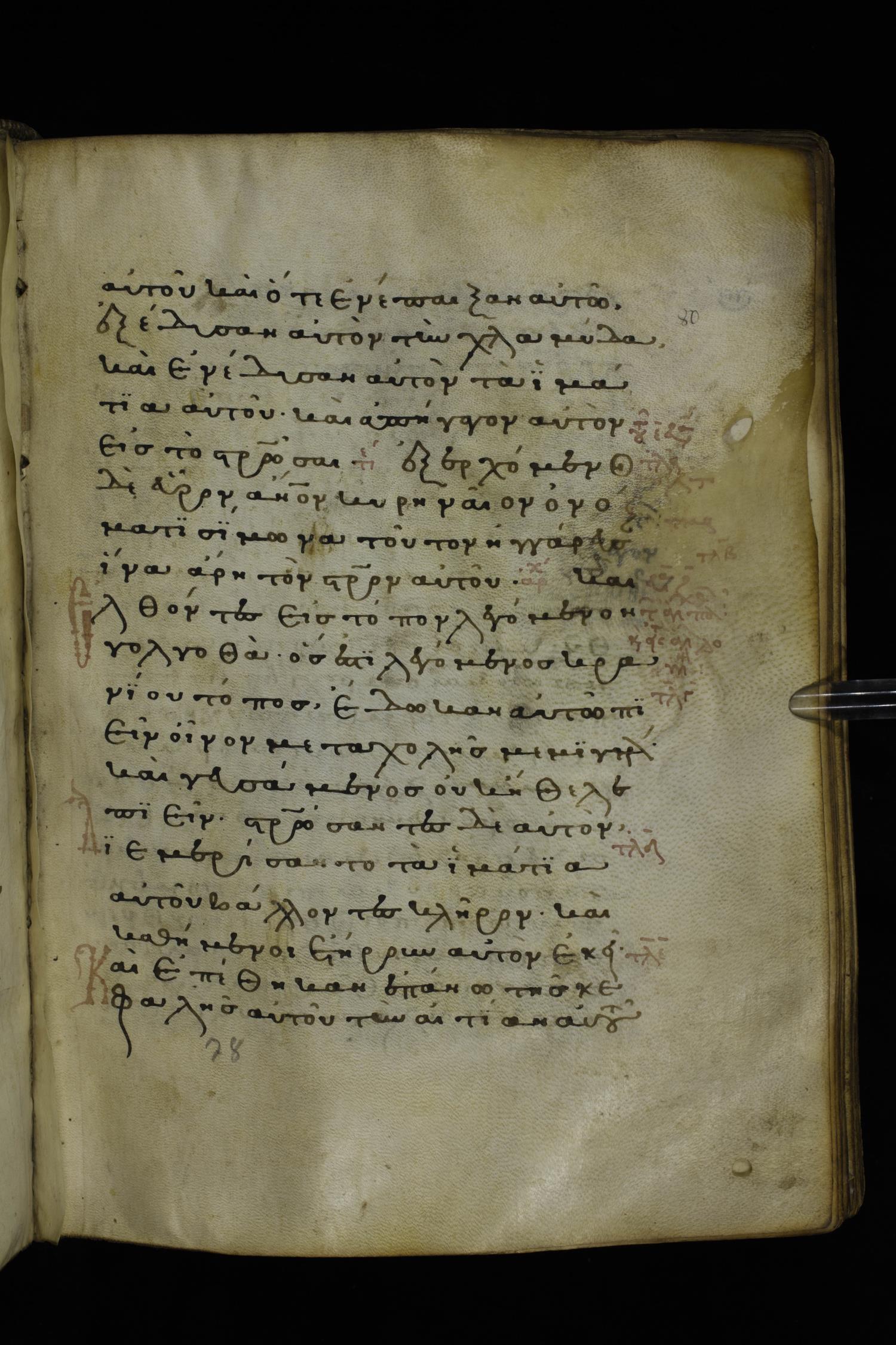 Thirteenth or fourteenth century minuscule of the Gospels on parchment; 312 leaves, 1 column, 19-22 lines per column. Images were taken at the National Library of Greece in Athens.