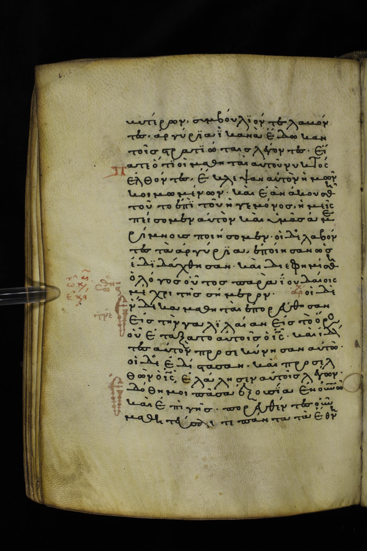 Thirteenth or fourteenth century minuscule of the Gospels on parchment; 312 leaves, 1 column, 19-22 lines per column. Images were taken at the National Library of Greece in Athens.
