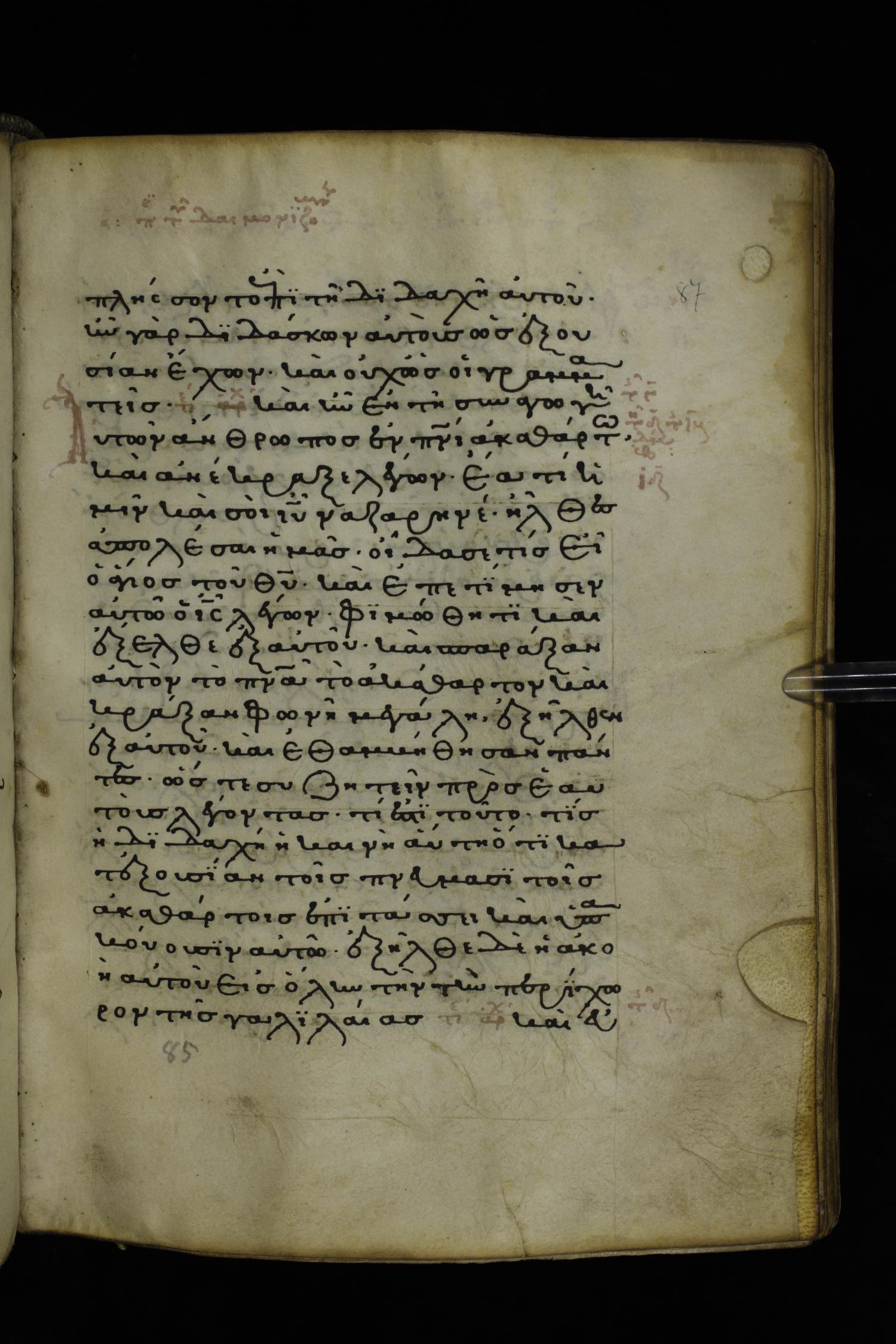 Thirteenth or fourteenth century minuscule of the Gospels on parchment; 312 leaves, 1 column, 19-22 lines per column. Images were taken at the National Library of Greece in Athens.