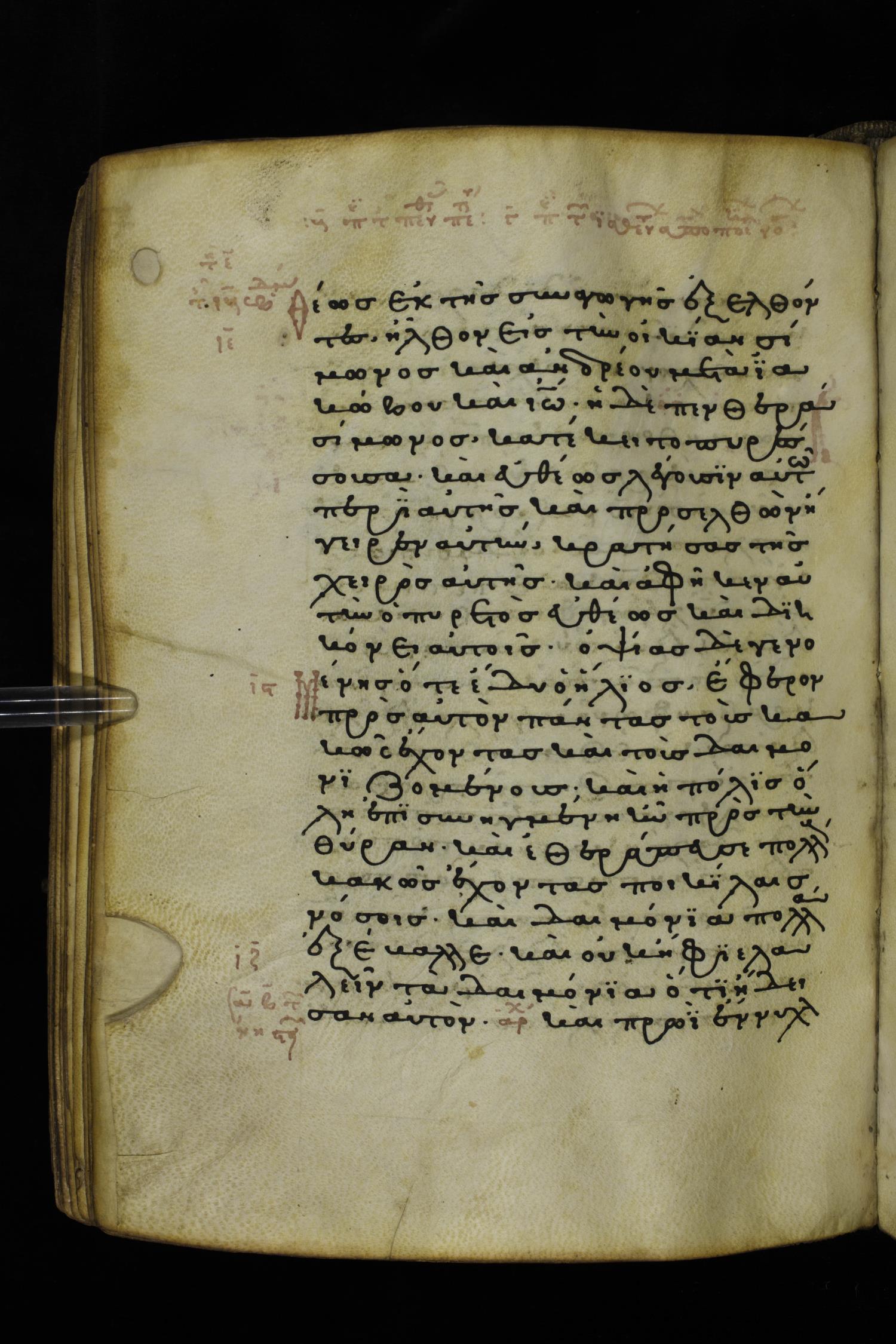 Thirteenth or fourteenth century minuscule of the Gospels on parchment; 312 leaves, 1 column, 19-22 lines per column. Images were taken at the National Library of Greece in Athens.