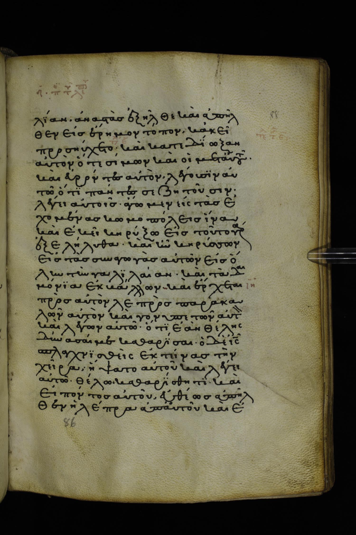 Thirteenth or fourteenth century minuscule of the Gospels on parchment; 312 leaves, 1 column, 19-22 lines per column. Images were taken at the National Library of Greece in Athens.