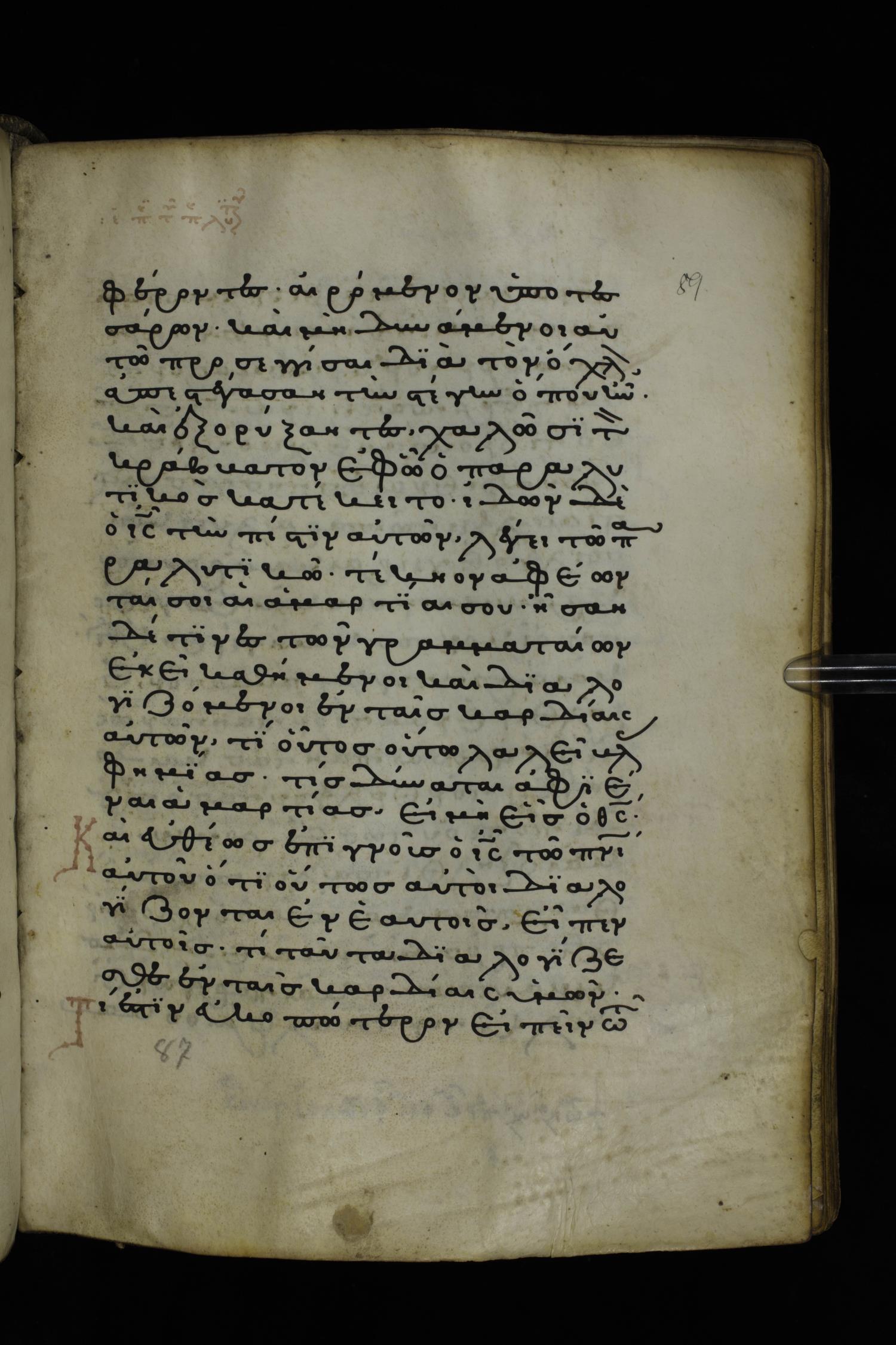 Thirteenth or fourteenth century minuscule of the Gospels on parchment; 312 leaves, 1 column, 19-22 lines per column. Images were taken at the National Library of Greece in Athens.