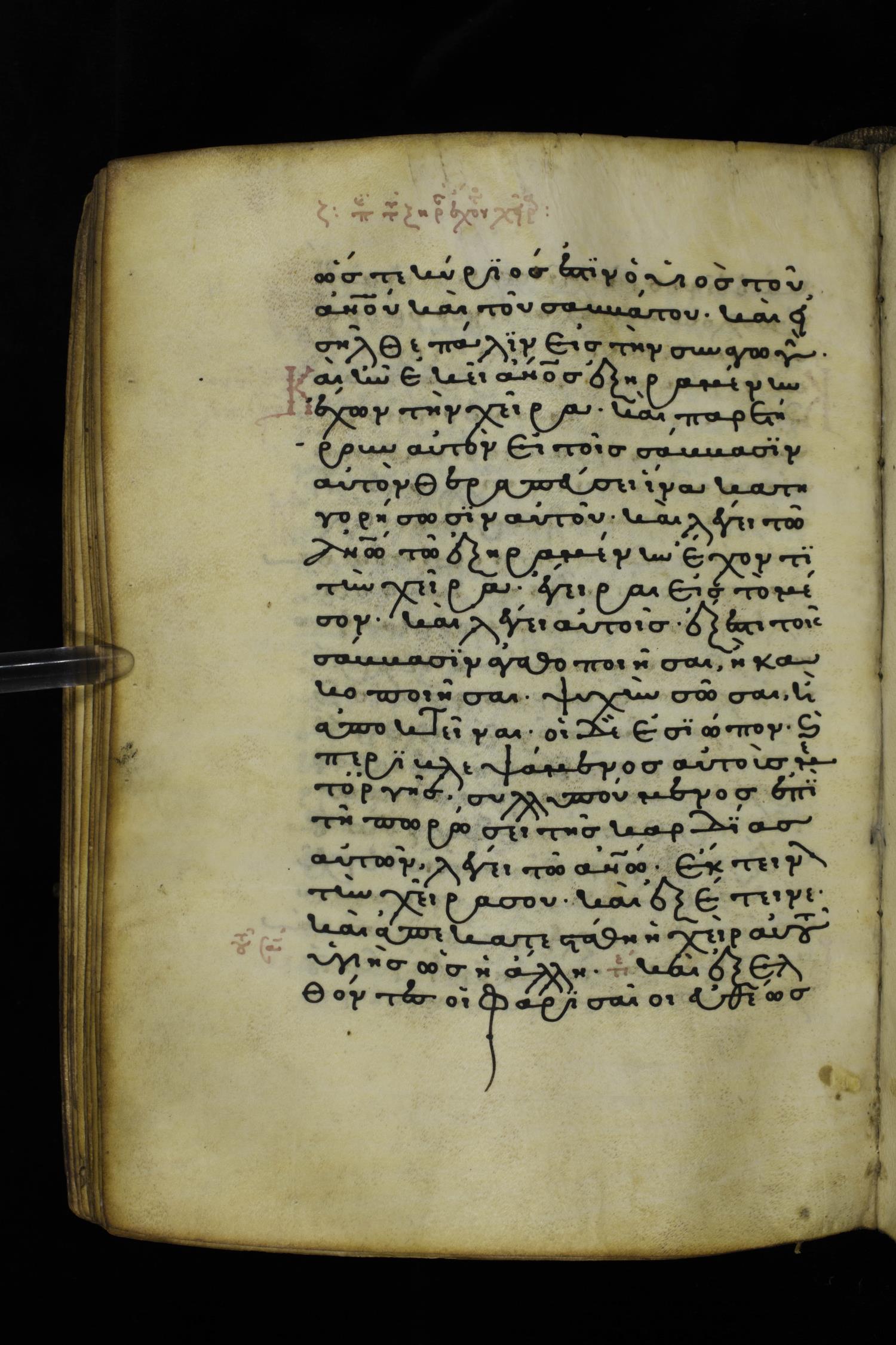 Thirteenth or fourteenth century minuscule of the Gospels on parchment; 312 leaves, 1 column, 19-22 lines per column. Images were taken at the National Library of Greece in Athens.