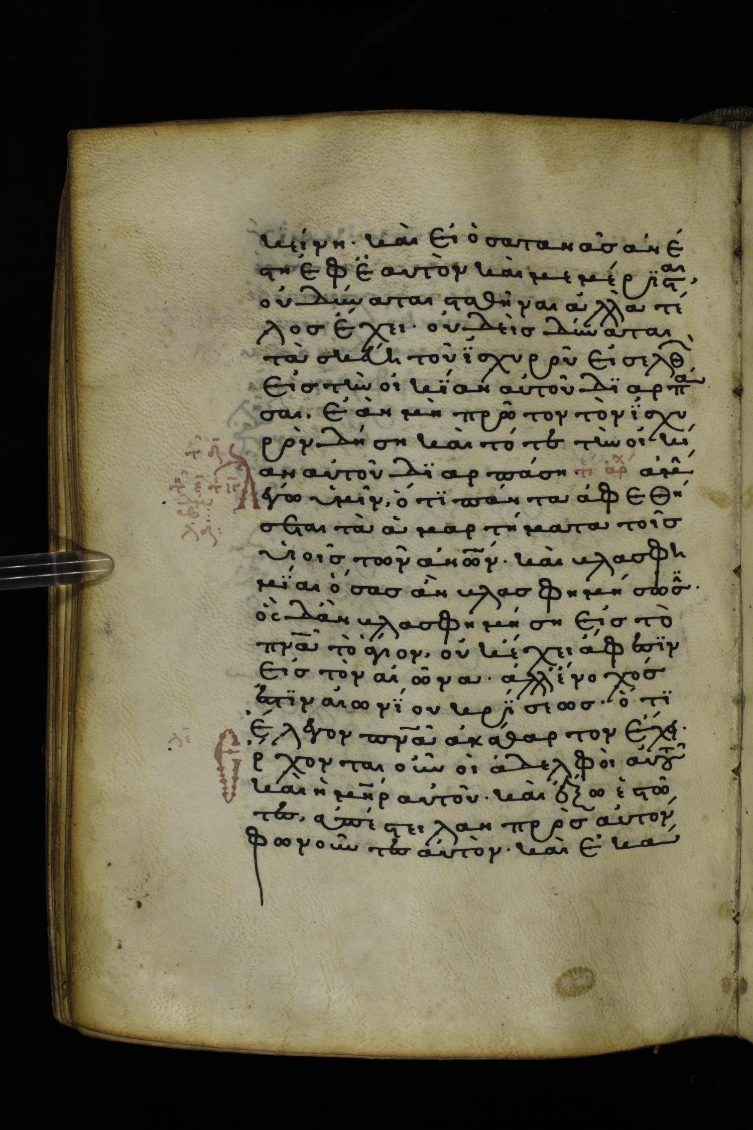 Thirteenth or fourteenth century minuscule of the Gospels on parchment; 312 leaves, 1 column, 19-22 lines per column. Images were taken at the National Library of Greece in Athens.