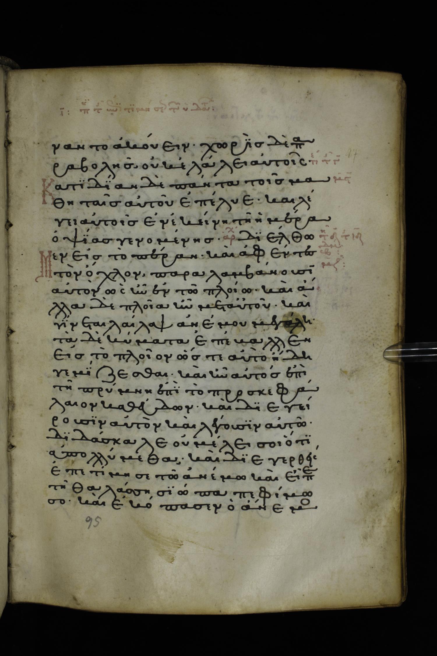 Thirteenth or fourteenth century minuscule of the Gospels on parchment; 312 leaves, 1 column, 19-22 lines per column. Images were taken at the National Library of Greece in Athens.