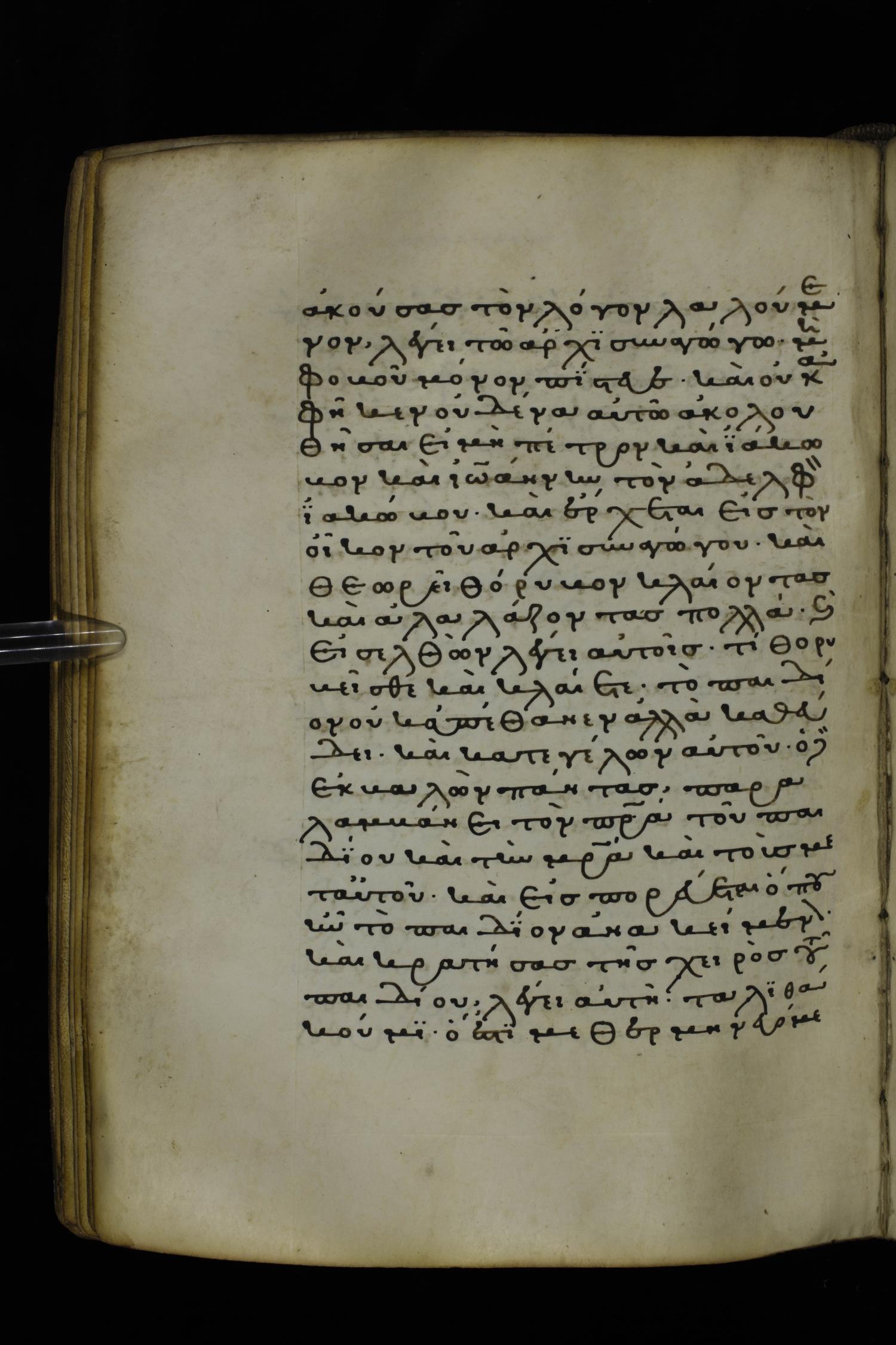 Thirteenth or fourteenth century minuscule of the Gospels on parchment; 312 leaves, 1 column, 19-22 lines per column. Images were taken at the National Library of Greece in Athens.