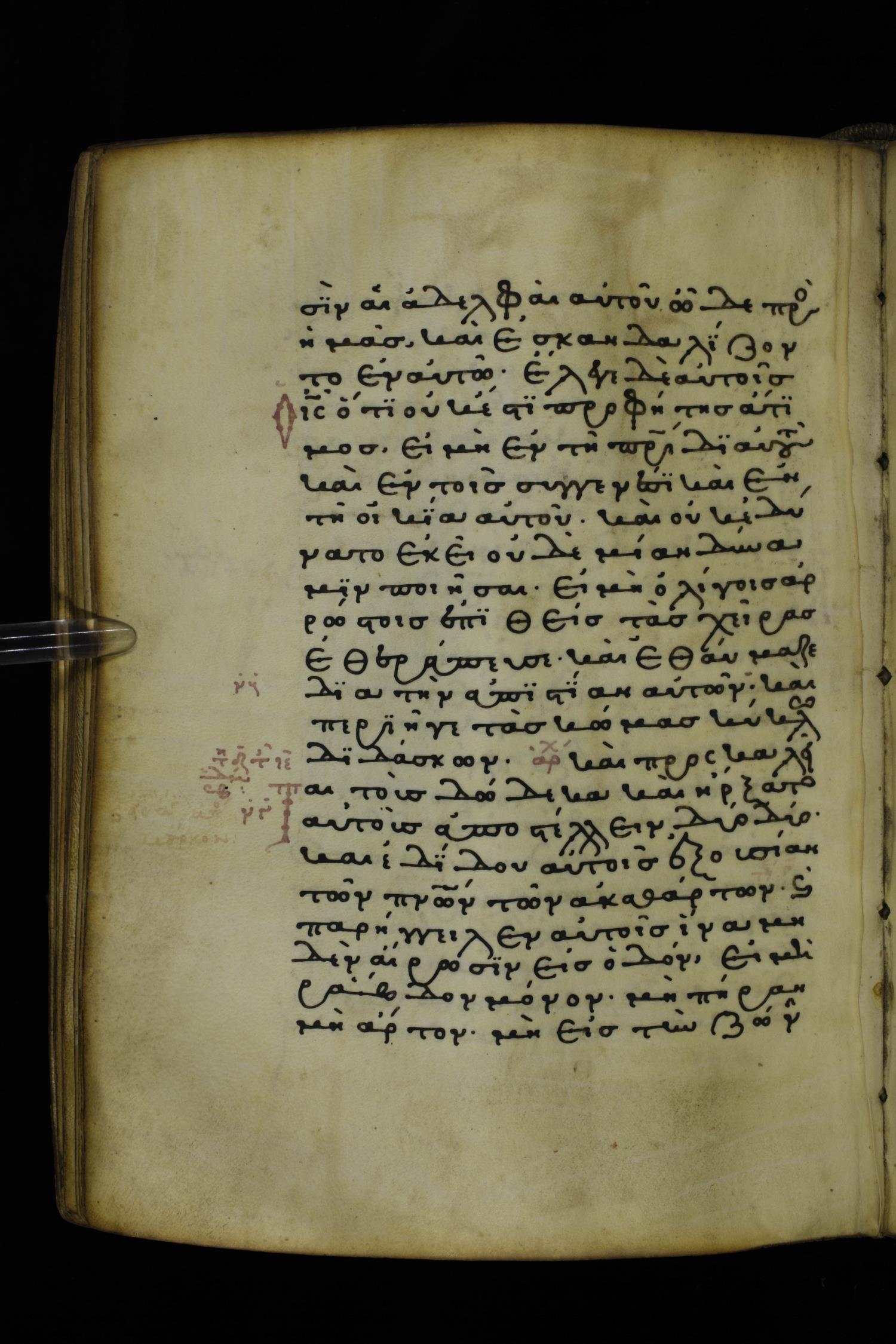 Thirteenth or fourteenth century minuscule of the Gospels on parchment; 312 leaves, 1 column, 19-22 lines per column. Images were taken at the National Library of Greece in Athens.
