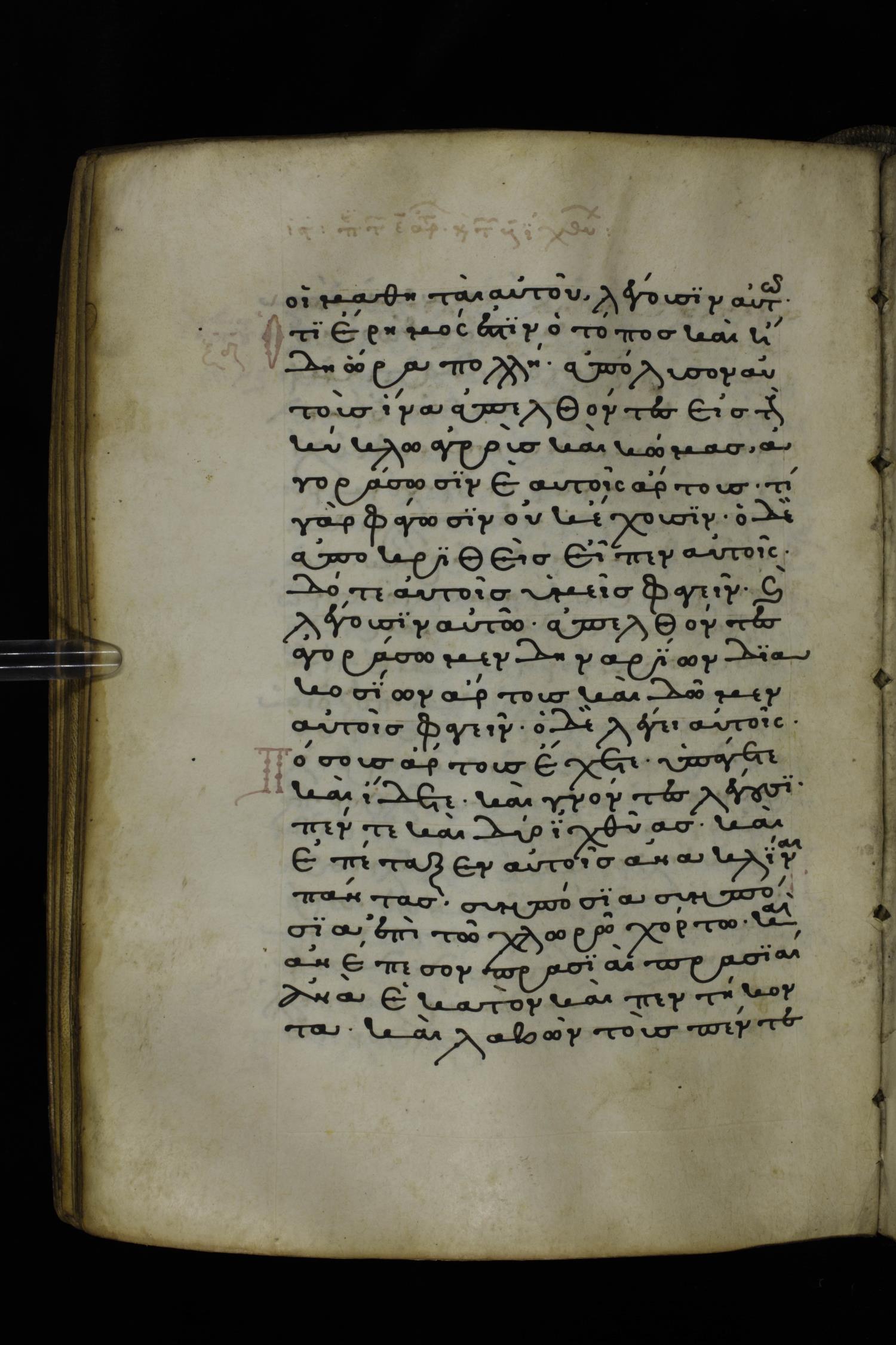 Thirteenth or fourteenth century minuscule of the Gospels on parchment; 312 leaves, 1 column, 19-22 lines per column. Images were taken at the National Library of Greece in Athens.