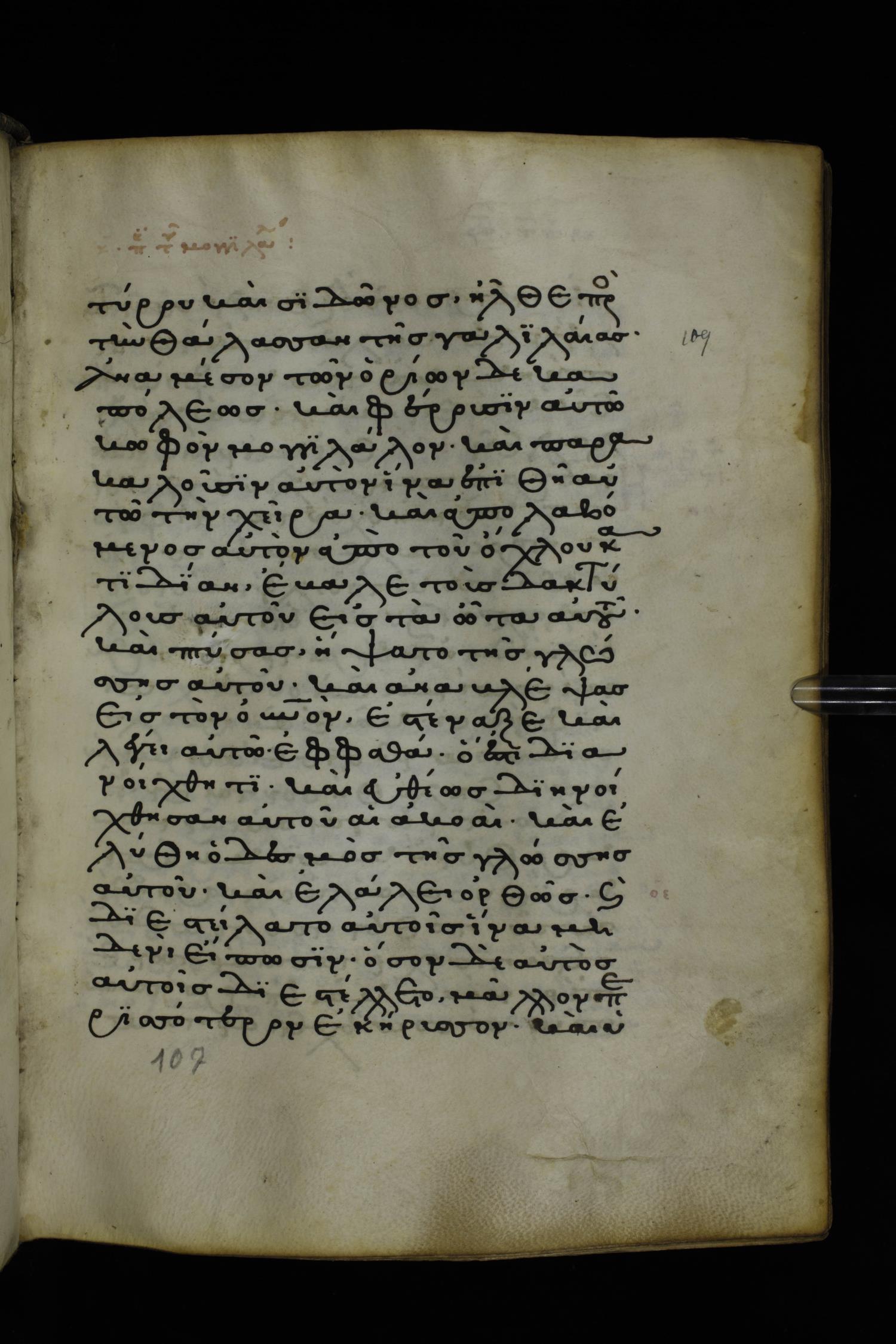 Thirteenth or fourteenth century minuscule of the Gospels on parchment; 312 leaves, 1 column, 19-22 lines per column. Images were taken at the National Library of Greece in Athens.