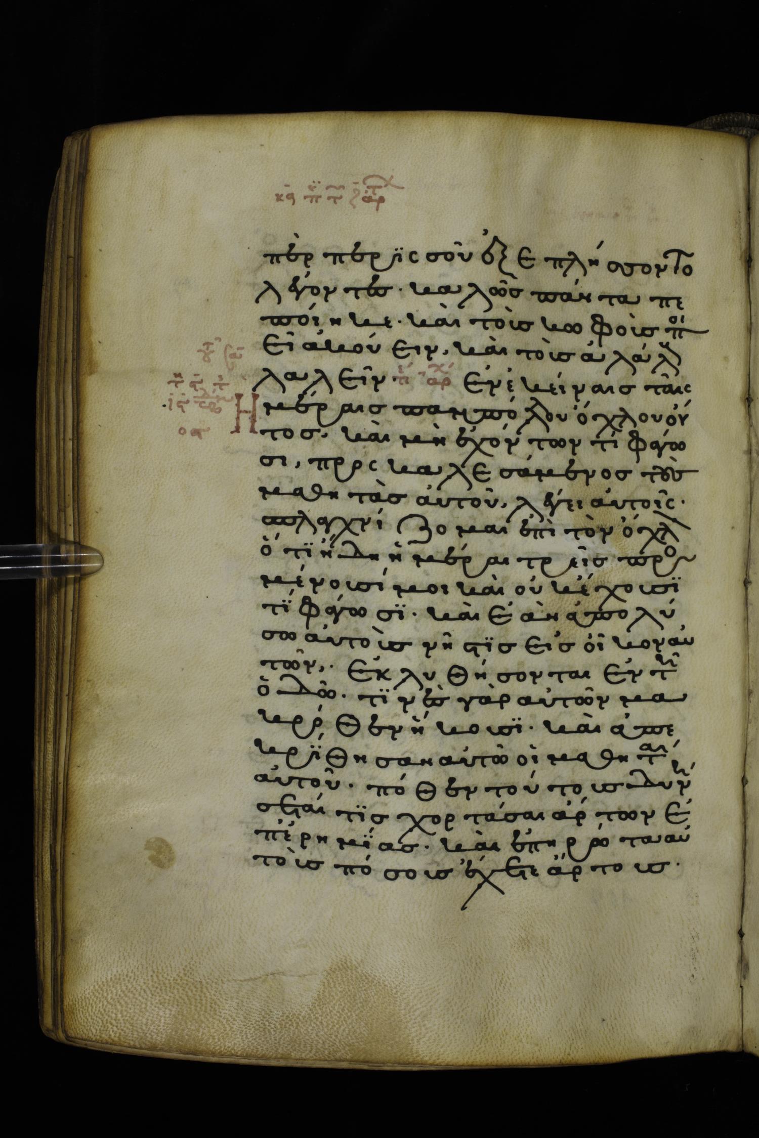 Thirteenth or fourteenth century minuscule of the Gospels on parchment; 312 leaves, 1 column, 19-22 lines per column. Images were taken at the National Library of Greece in Athens.