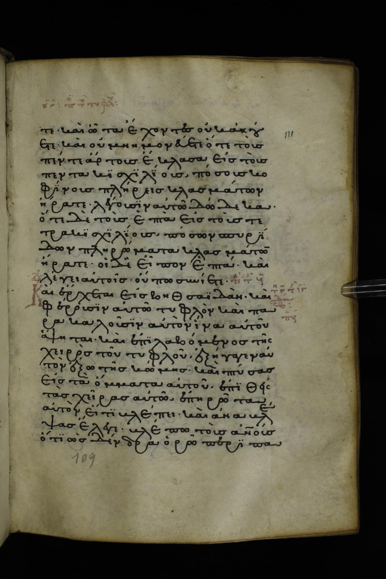 Thirteenth or fourteenth century minuscule of the Gospels on parchment; 312 leaves, 1 column, 19-22 lines per column. Images were taken at the National Library of Greece in Athens.