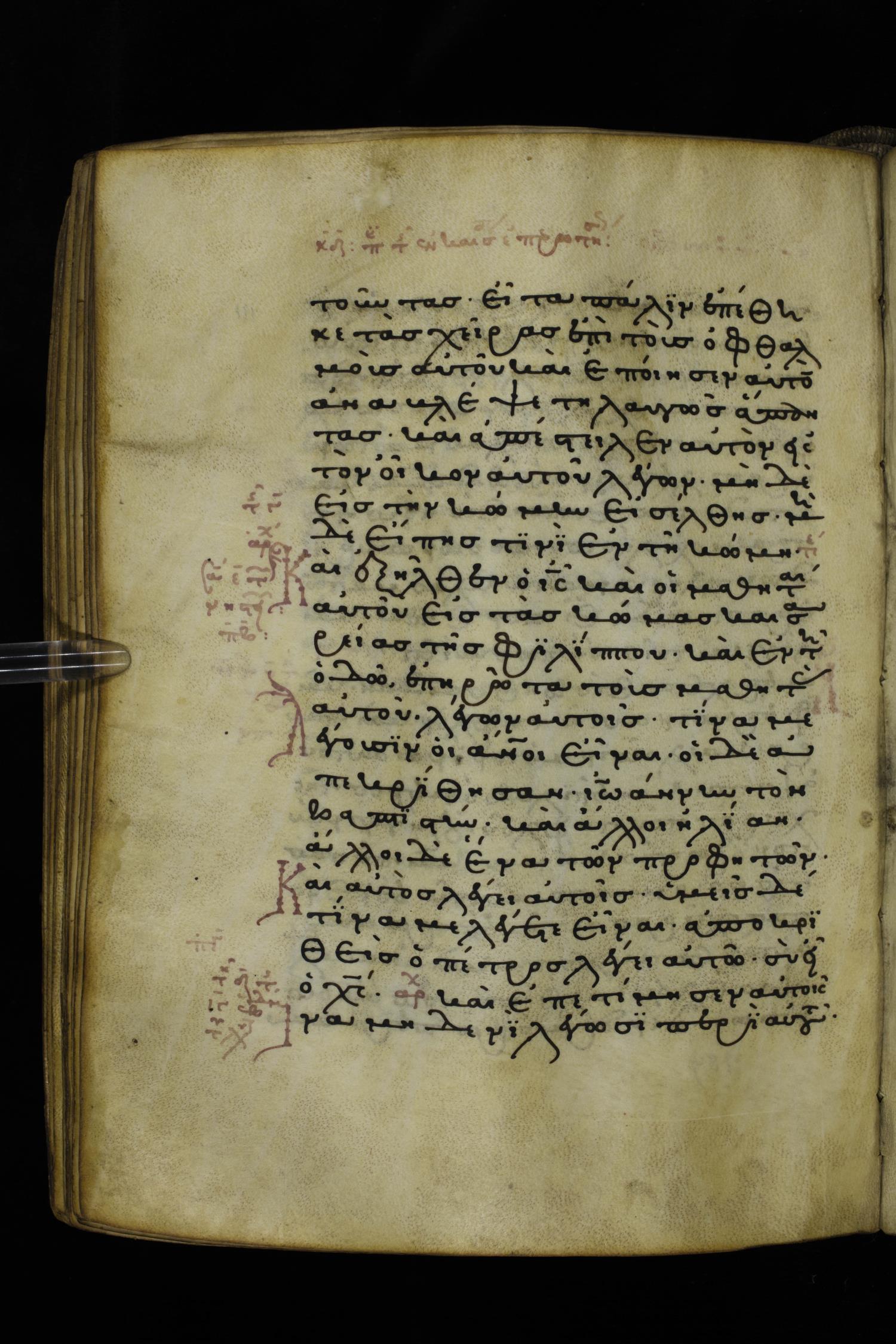 Thirteenth or fourteenth century minuscule of the Gospels on parchment; 312 leaves, 1 column, 19-22 lines per column. Images were taken at the National Library of Greece in Athens.