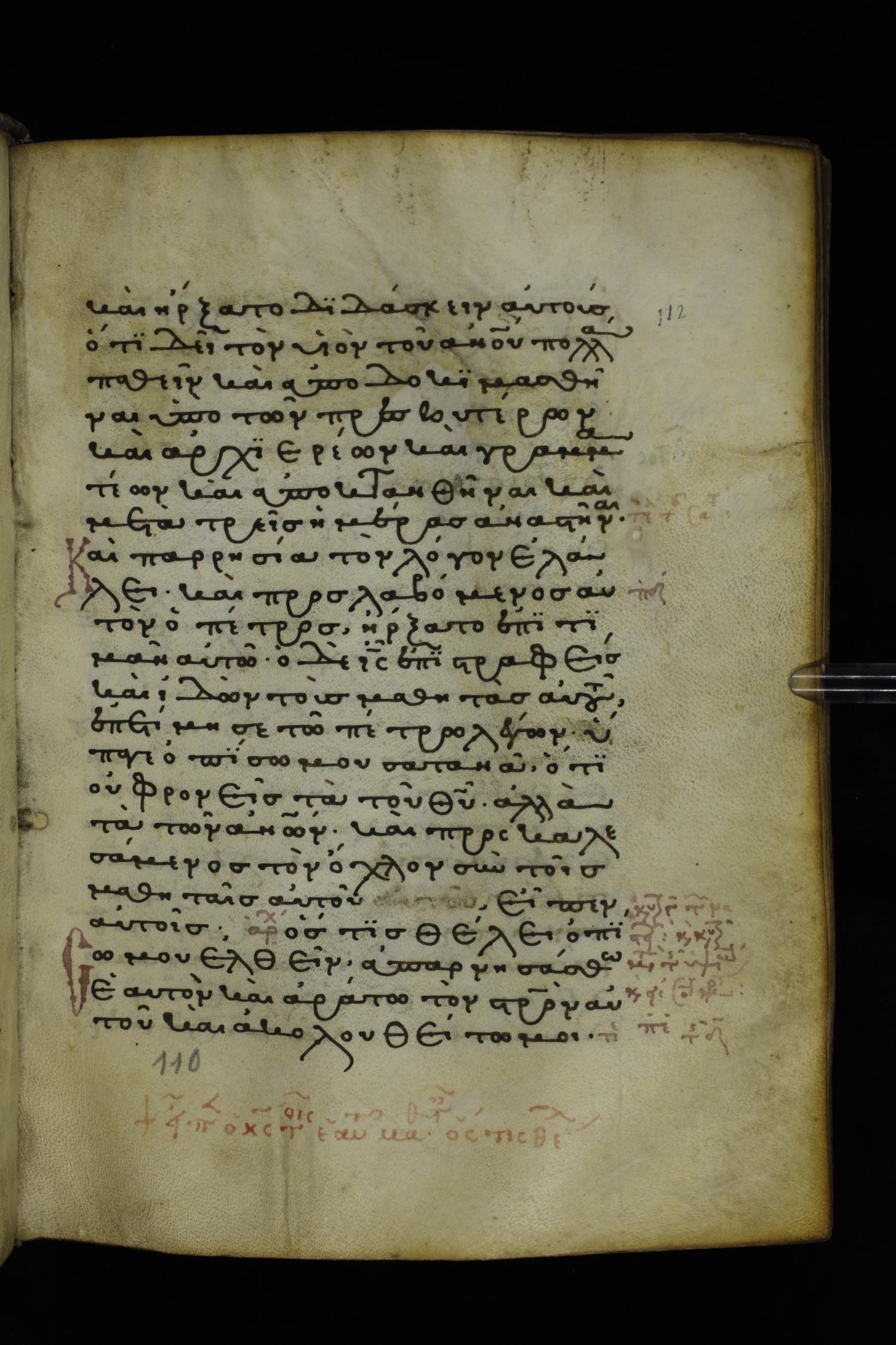 Thirteenth or fourteenth century minuscule of the Gospels on parchment; 312 leaves, 1 column, 19-22 lines per column. Images were taken at the National Library of Greece in Athens.