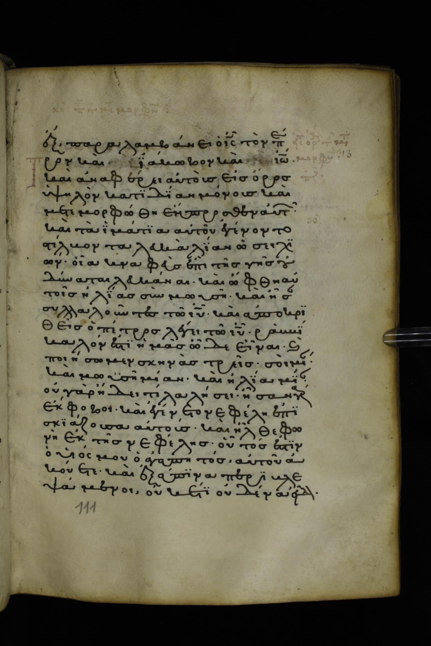 Thirteenth or fourteenth century minuscule of the Gospels on parchment; 312 leaves, 1 column, 19-22 lines per column. Images were taken at the National Library of Greece in Athens.
