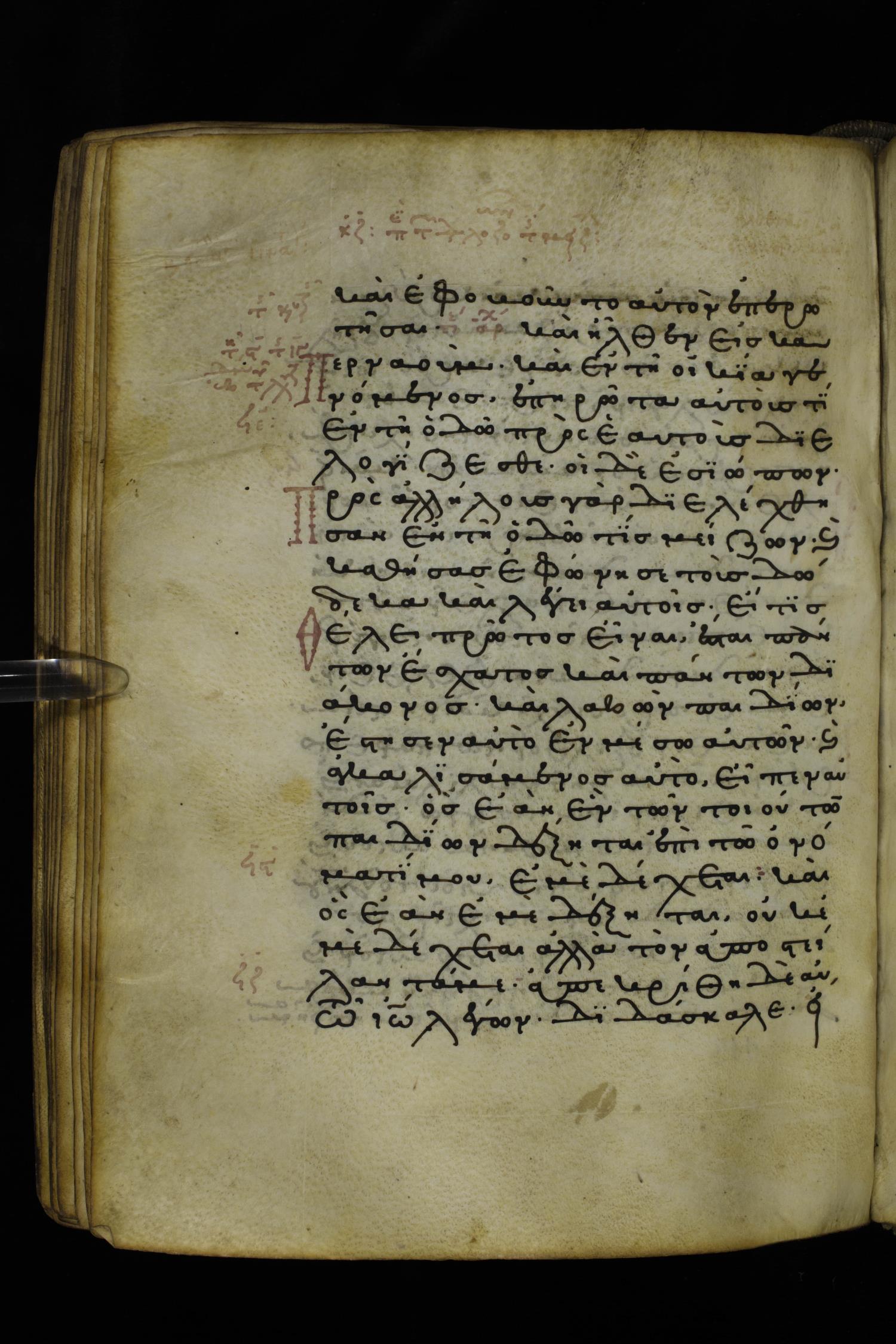 Thirteenth or fourteenth century minuscule of the Gospels on parchment; 312 leaves, 1 column, 19-22 lines per column. Images were taken at the National Library of Greece in Athens.