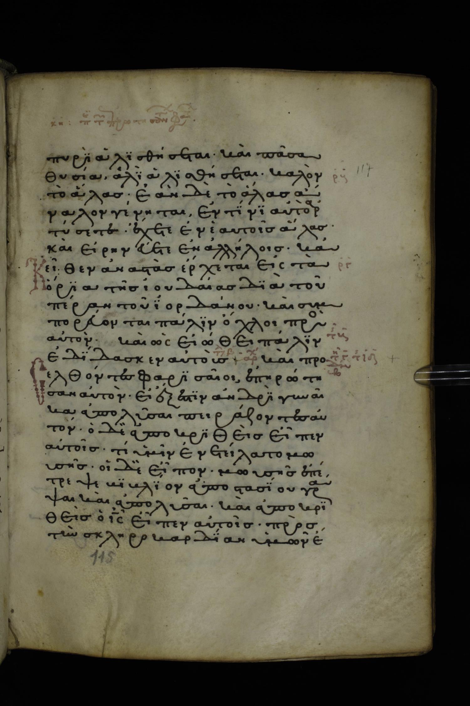Thirteenth or fourteenth century minuscule of the Gospels on parchment; 312 leaves, 1 column, 19-22 lines per column. Images were taken at the National Library of Greece in Athens.