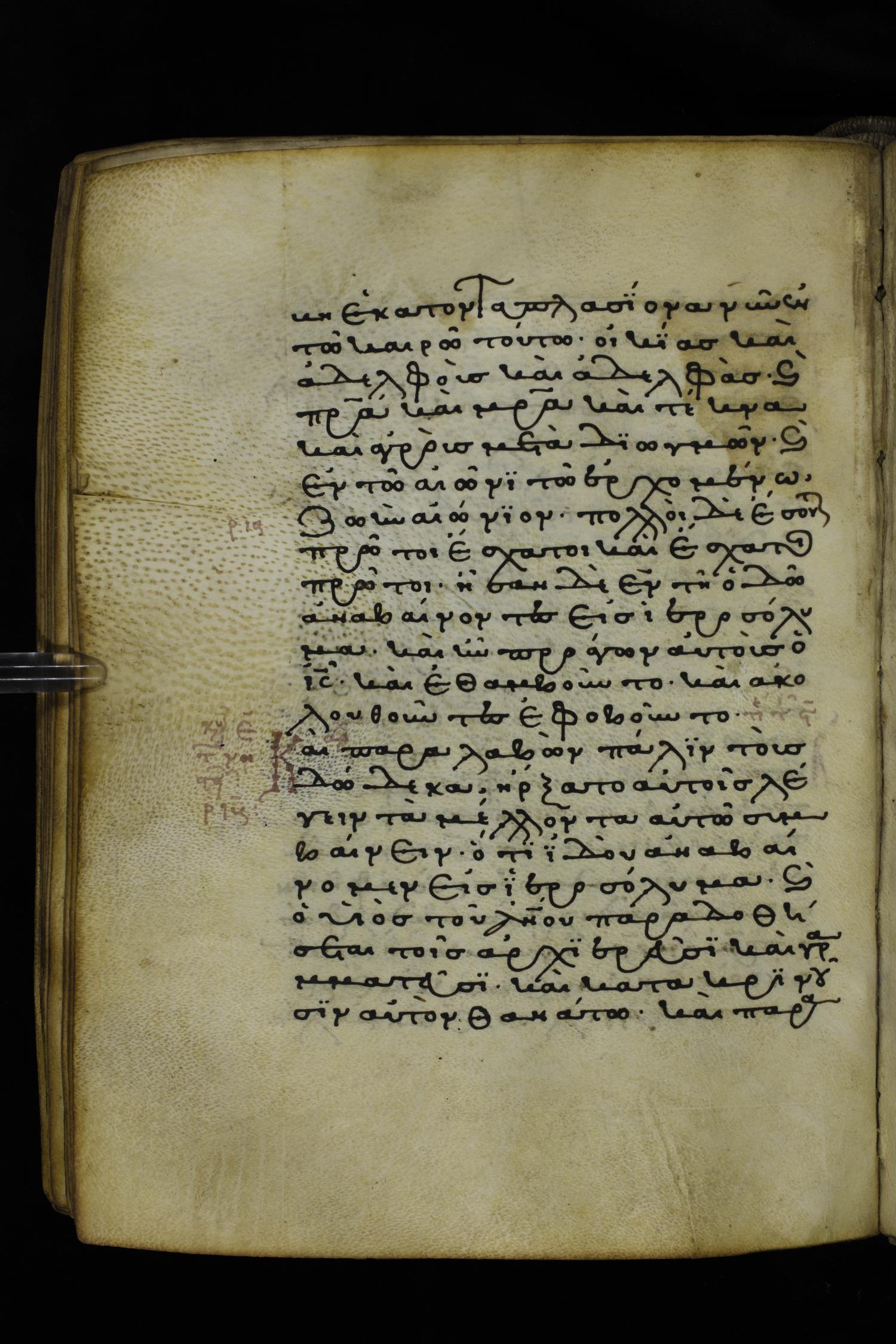 Thirteenth or fourteenth century minuscule of the Gospels on parchment; 312 leaves, 1 column, 19-22 lines per column. Images were taken at the National Library of Greece in Athens.