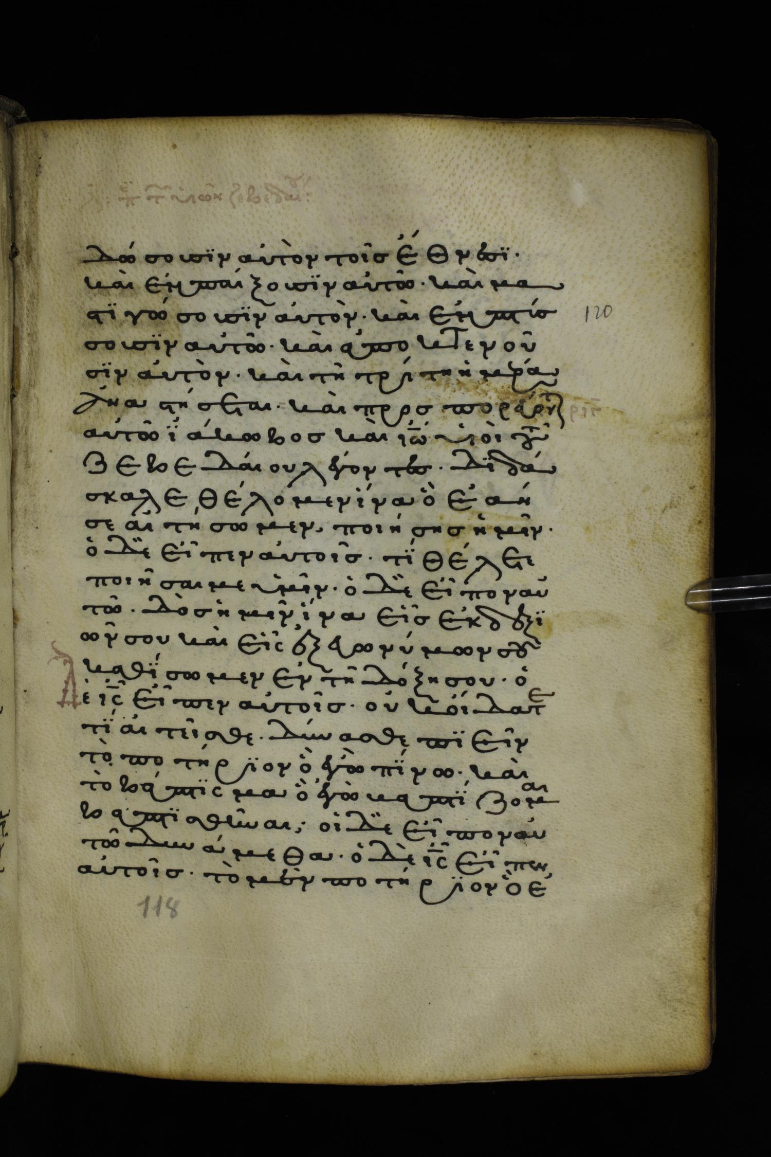 Thirteenth or fourteenth century minuscule of the Gospels on parchment; 312 leaves, 1 column, 19-22 lines per column. Images were taken at the National Library of Greece in Athens.