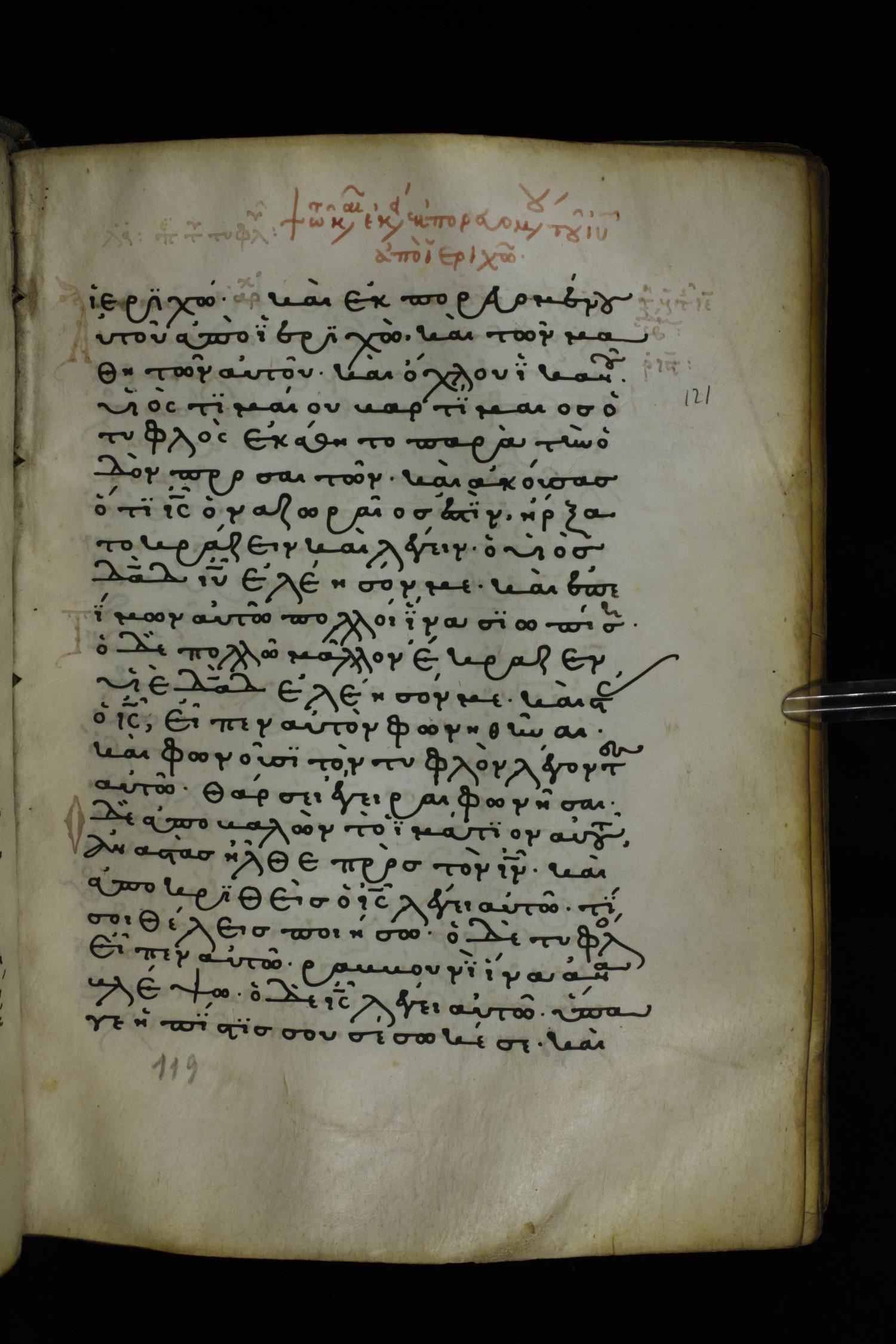 Thirteenth or fourteenth century minuscule of the Gospels on parchment; 312 leaves, 1 column, 19-22 lines per column. Images were taken at the National Library of Greece in Athens.