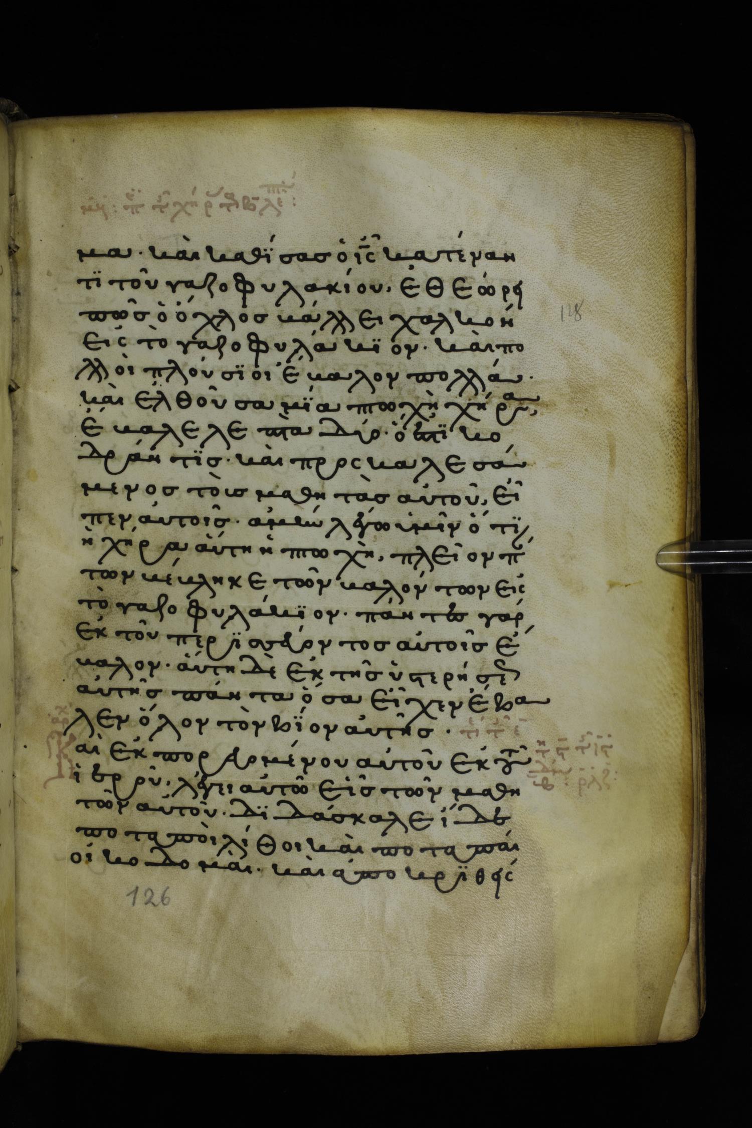Thirteenth or fourteenth century minuscule of the Gospels on parchment; 312 leaves, 1 column, 19-22 lines per column. Images were taken at the National Library of Greece in Athens.