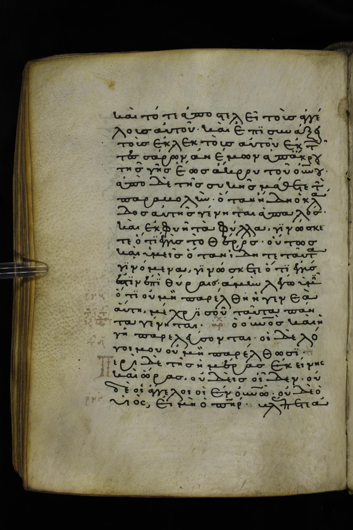 Thirteenth or fourteenth century minuscule of the Gospels on parchment; 312 leaves, 1 column, 19-22 lines per column. Images were taken at the National Library of Greece in Athens.