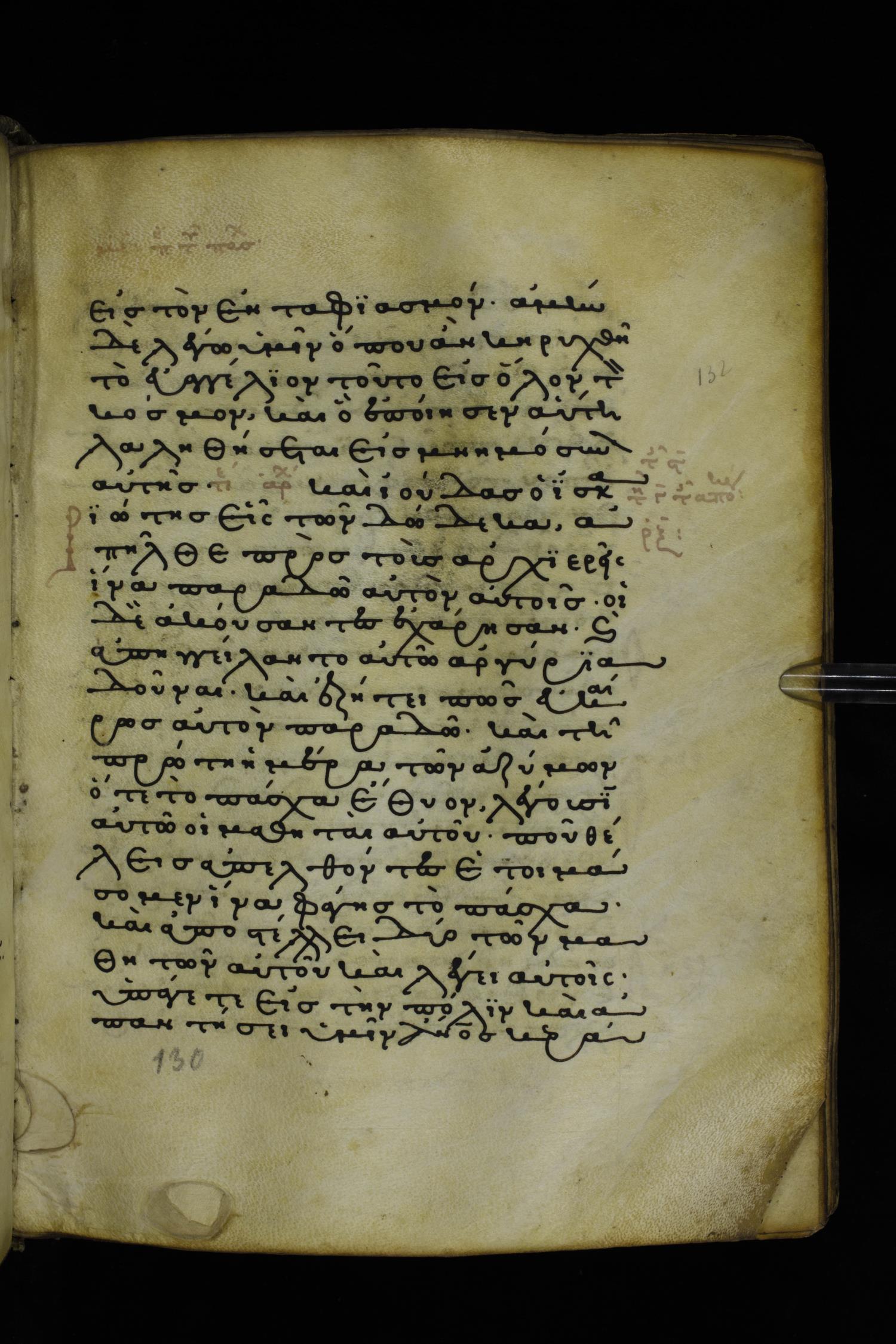 Thirteenth or fourteenth century minuscule of the Gospels on parchment; 312 leaves, 1 column, 19-22 lines per column. Images were taken at the National Library of Greece in Athens.