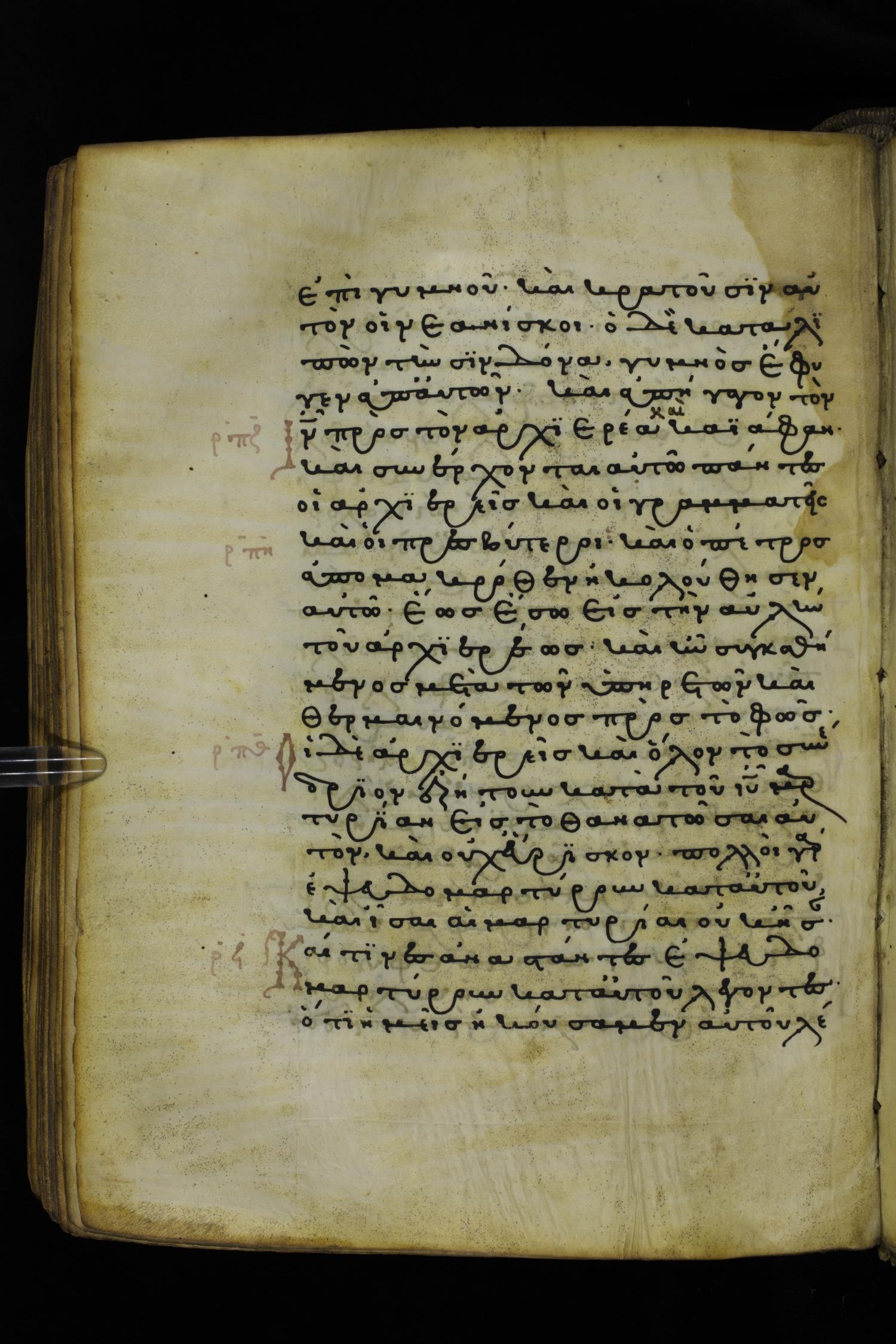 Thirteenth or fourteenth century minuscule of the Gospels on parchment; 312 leaves, 1 column, 19-22 lines per column. Images were taken at the National Library of Greece in Athens.
