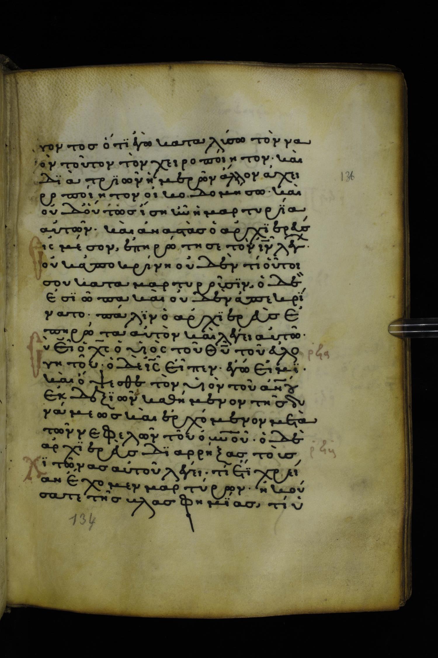 Thirteenth or fourteenth century minuscule of the Gospels on parchment; 312 leaves, 1 column, 19-22 lines per column. Images were taken at the National Library of Greece in Athens.