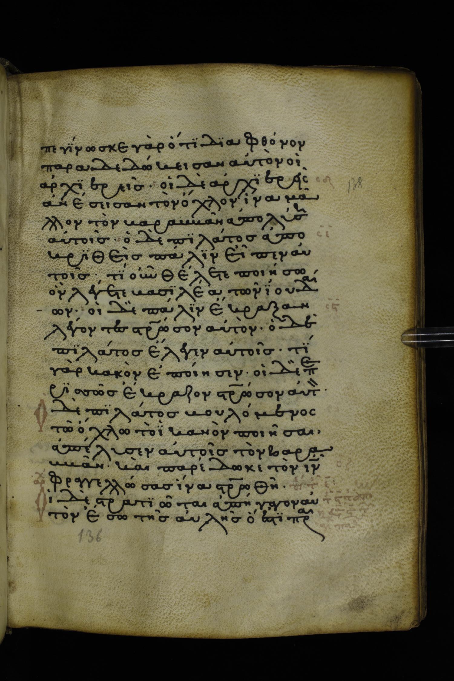 Thirteenth or fourteenth century minuscule of the Gospels on parchment; 312 leaves, 1 column, 19-22 lines per column. Images were taken at the National Library of Greece in Athens.