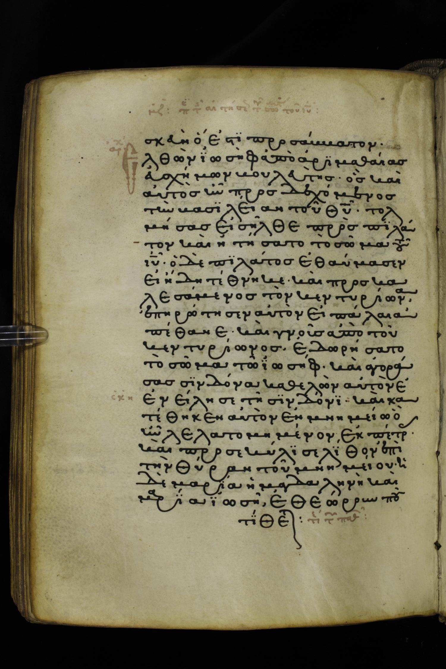 Thirteenth or fourteenth century minuscule of the Gospels on parchment; 312 leaves, 1 column, 19-22 lines per column. Images were taken at the National Library of Greece in Athens.