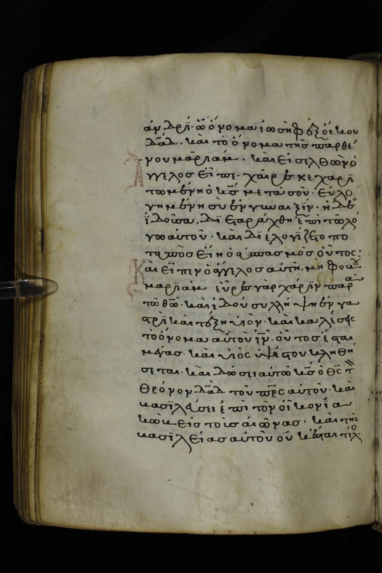 Thirteenth or fourteenth century minuscule of the Gospels on parchment; 312 leaves, 1 column, 19-22 lines per column. Images were taken at the National Library of Greece in Athens.
