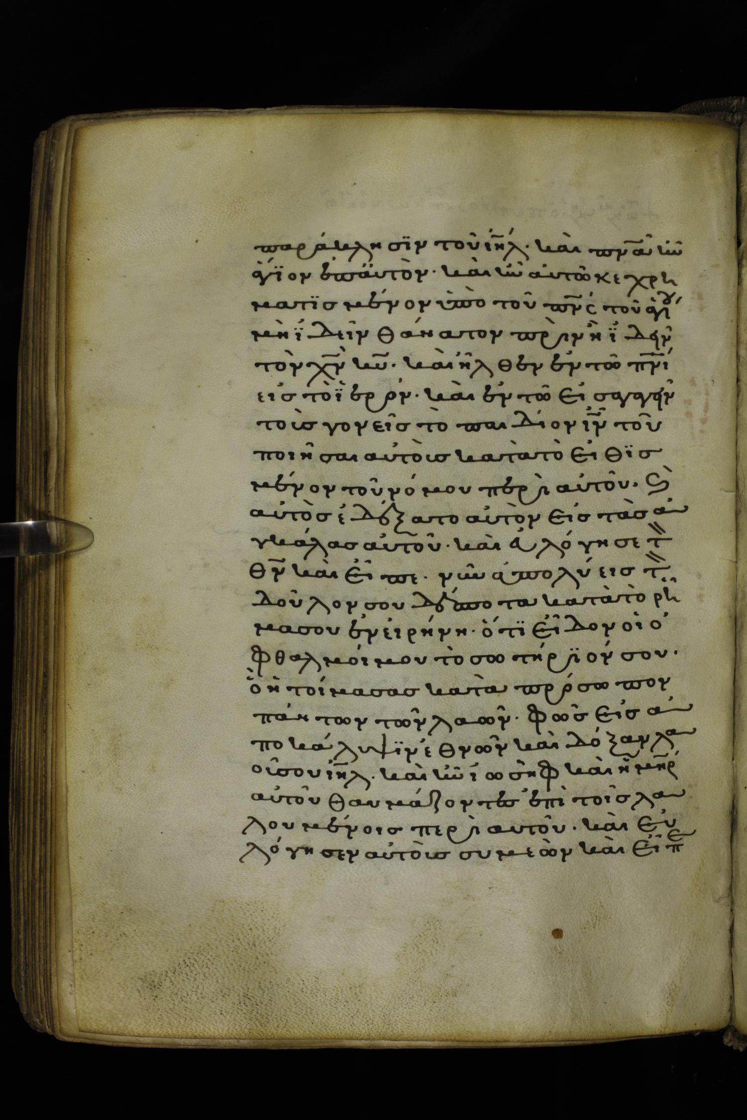 Thirteenth or fourteenth century minuscule of the Gospels on parchment; 312 leaves, 1 column, 19-22 lines per column. Images were taken at the National Library of Greece in Athens.