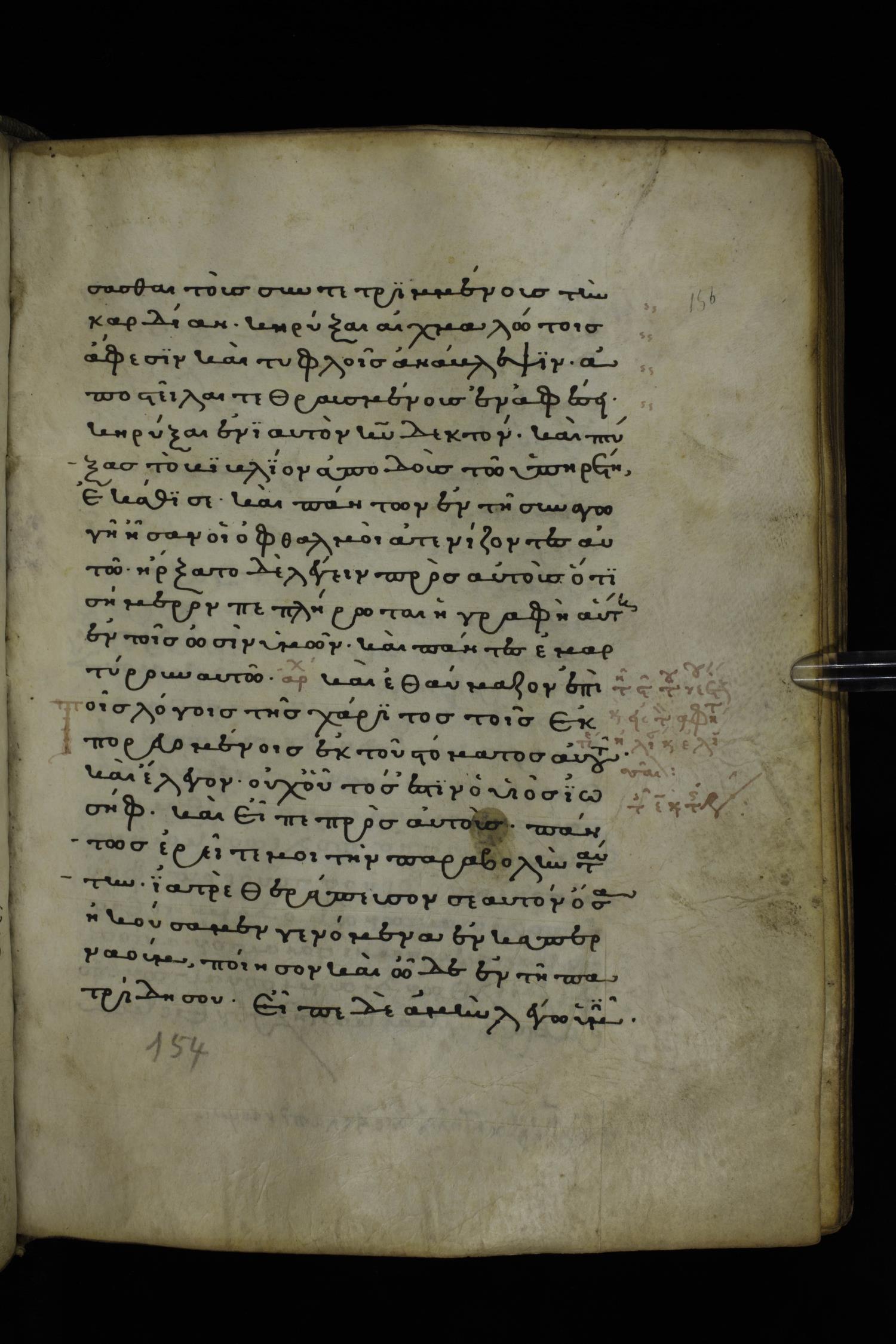 Thirteenth or fourteenth century minuscule of the Gospels on parchment; 312 leaves, 1 column, 19-22 lines per column. Images were taken at the National Library of Greece in Athens.