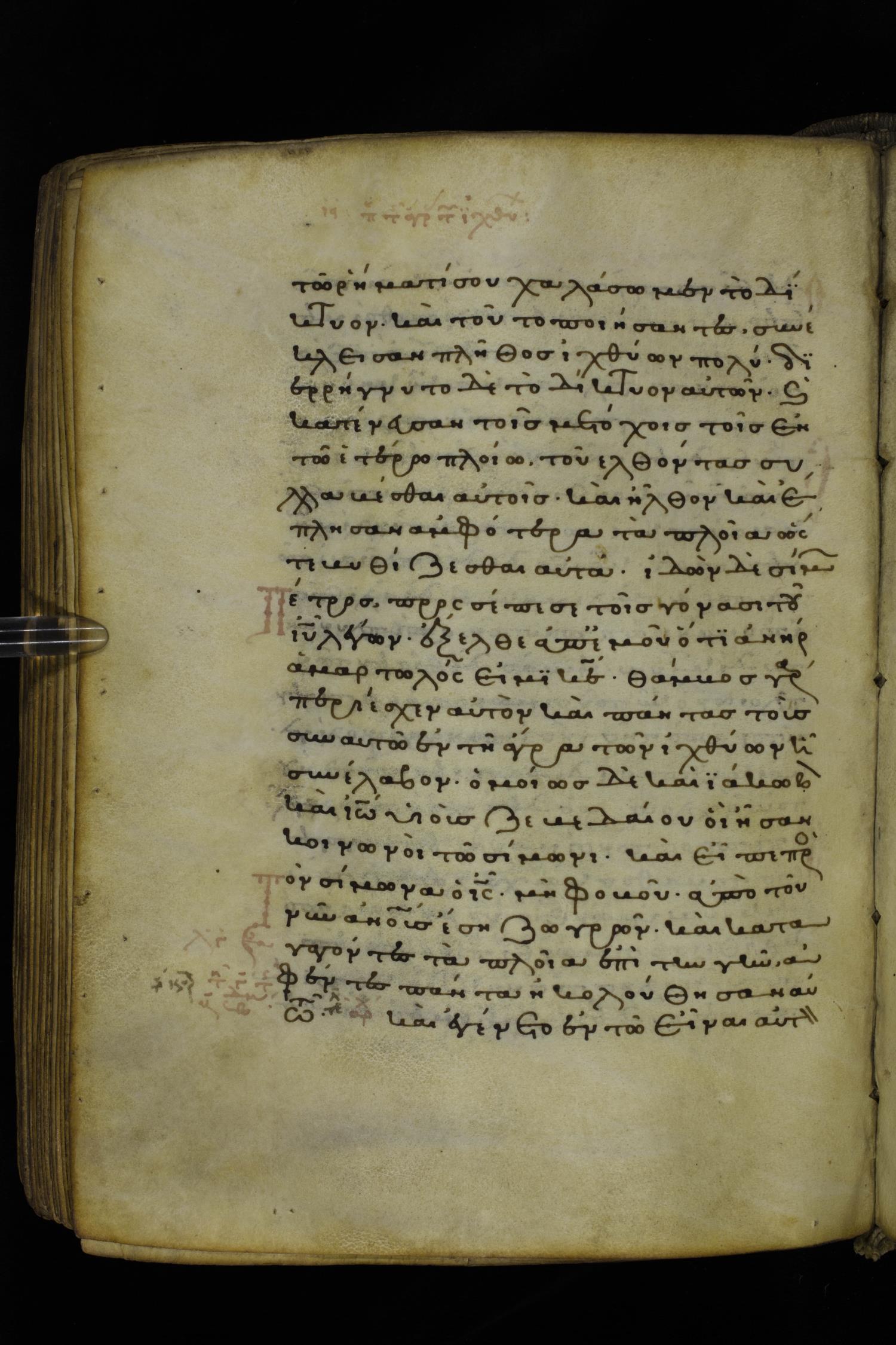 Thirteenth or fourteenth century minuscule of the Gospels on parchment; 312 leaves, 1 column, 19-22 lines per column. Images were taken at the National Library of Greece in Athens.