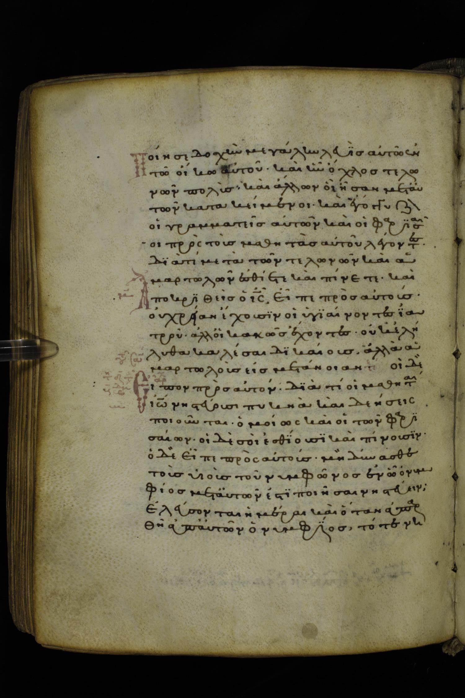 Thirteenth or fourteenth century minuscule of the Gospels on parchment; 312 leaves, 1 column, 19-22 lines per column. Images were taken at the National Library of Greece in Athens.