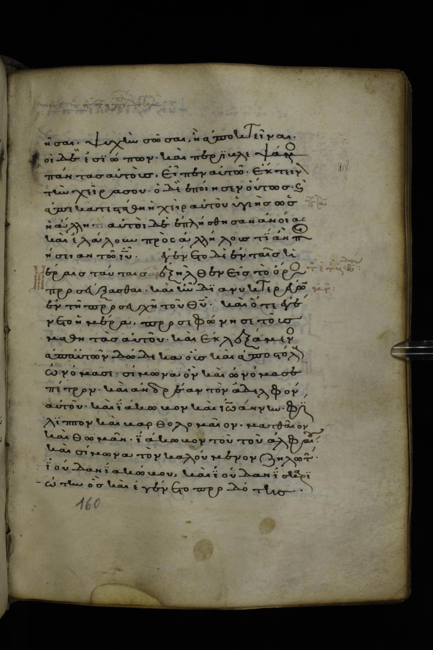 Thirteenth or fourteenth century minuscule of the Gospels on parchment; 312 leaves, 1 column, 19-22 lines per column. Images were taken at the National Library of Greece in Athens.