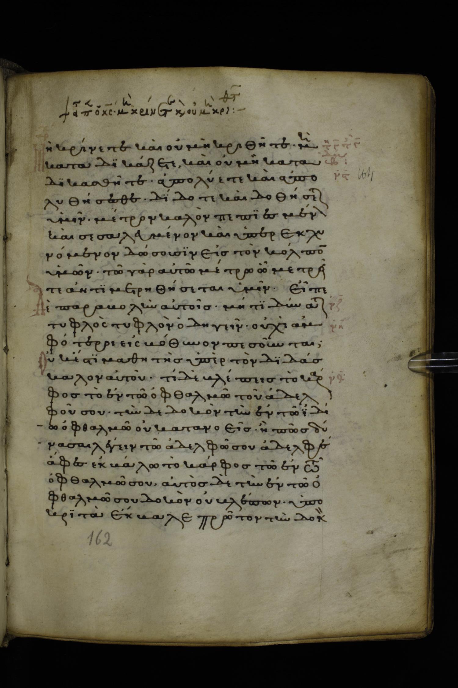 Thirteenth or fourteenth century minuscule of the Gospels on parchment; 312 leaves, 1 column, 19-22 lines per column. Images were taken at the National Library of Greece in Athens.