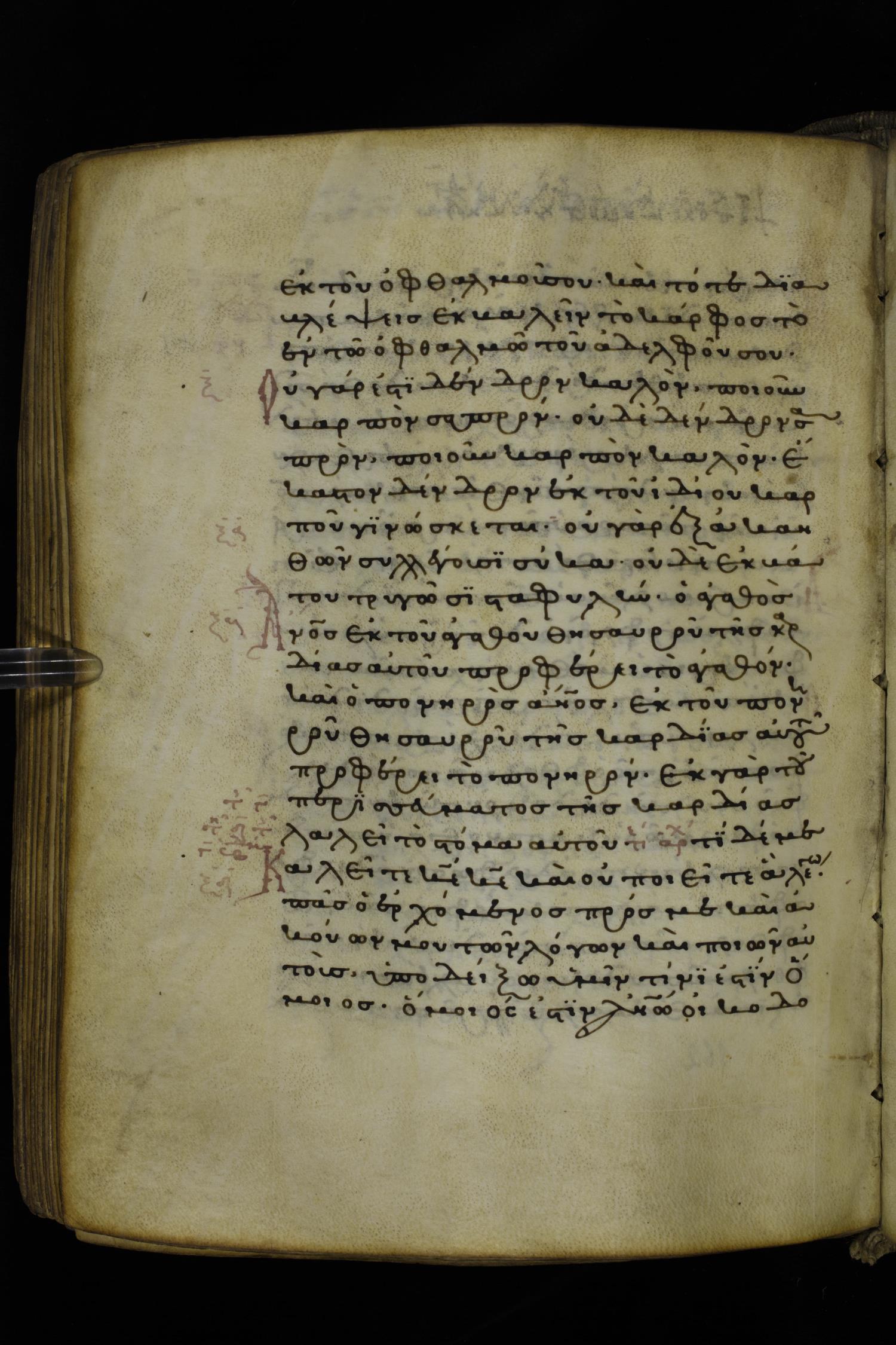 Thirteenth or fourteenth century minuscule of the Gospels on parchment; 312 leaves, 1 column, 19-22 lines per column. Images were taken at the National Library of Greece in Athens.