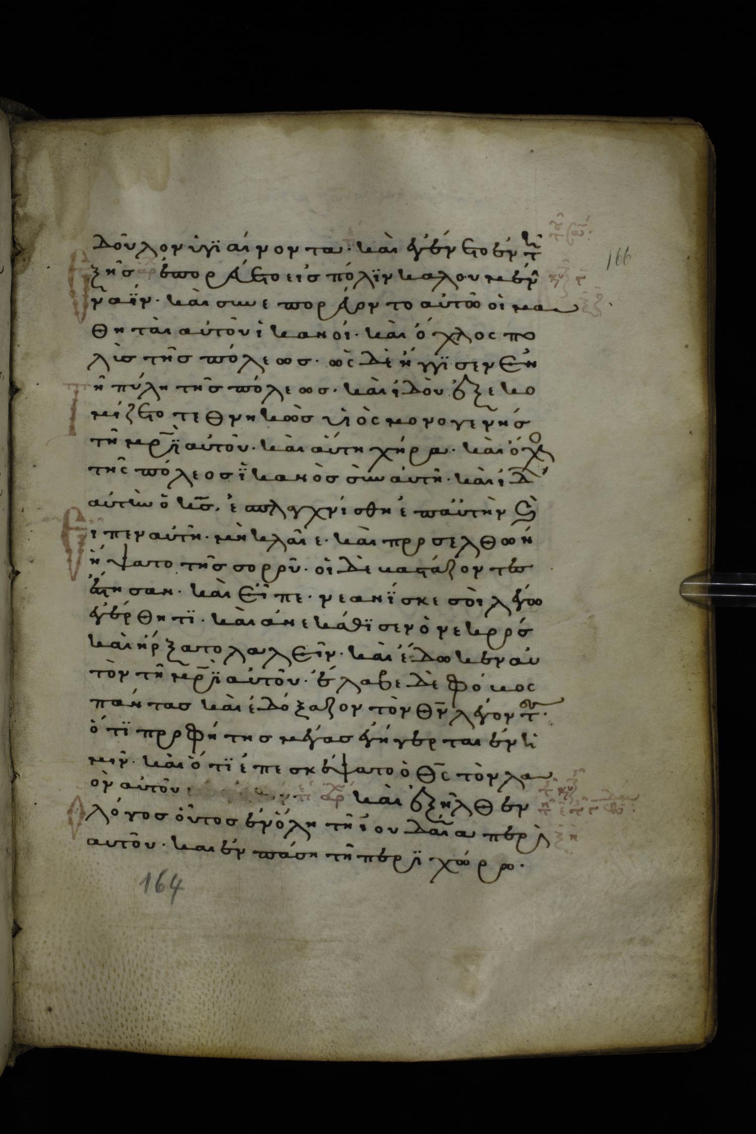 Thirteenth or fourteenth century minuscule of the Gospels on parchment; 312 leaves, 1 column, 19-22 lines per column. Images were taken at the National Library of Greece in Athens.