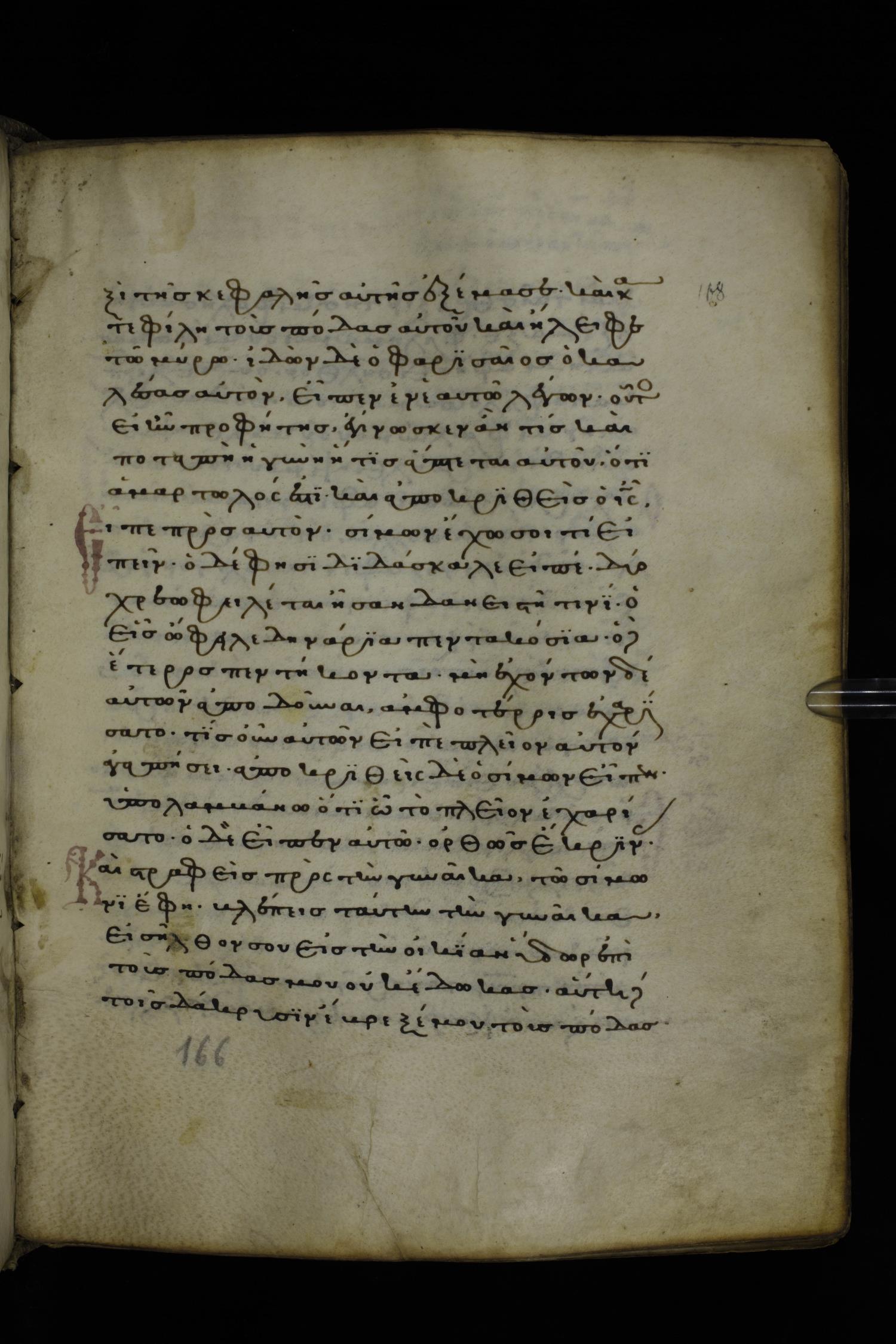 Thirteenth or fourteenth century minuscule of the Gospels on parchment; 312 leaves, 1 column, 19-22 lines per column. Images were taken at the National Library of Greece in Athens.